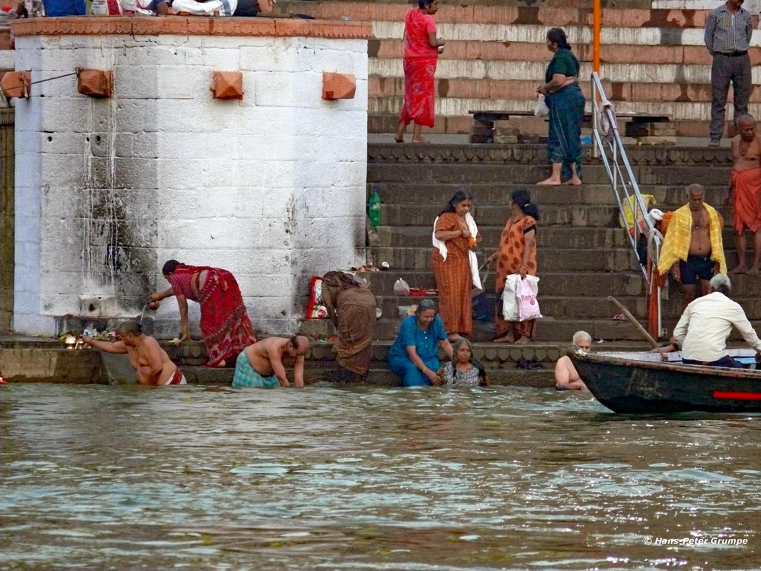 Varanasi: Frühmorgens auf dem Ganges - Kedar Ghat, Badende