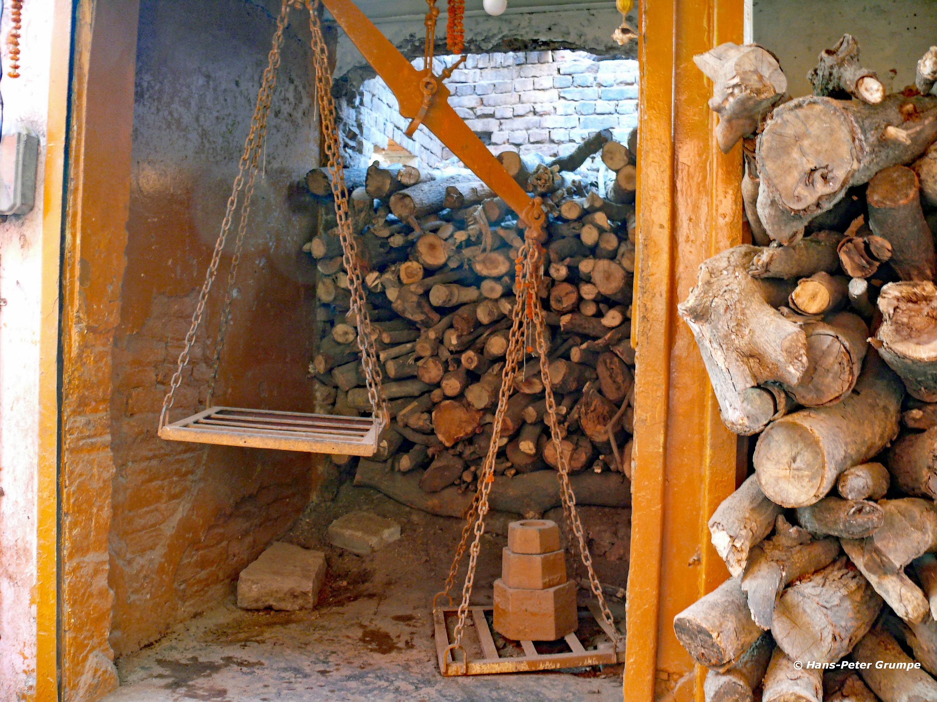 Varanasi: Frühmorgens auf dem Ganges - Jalasen Ghat, Leichen Verbrennungsstätte - Holzlager