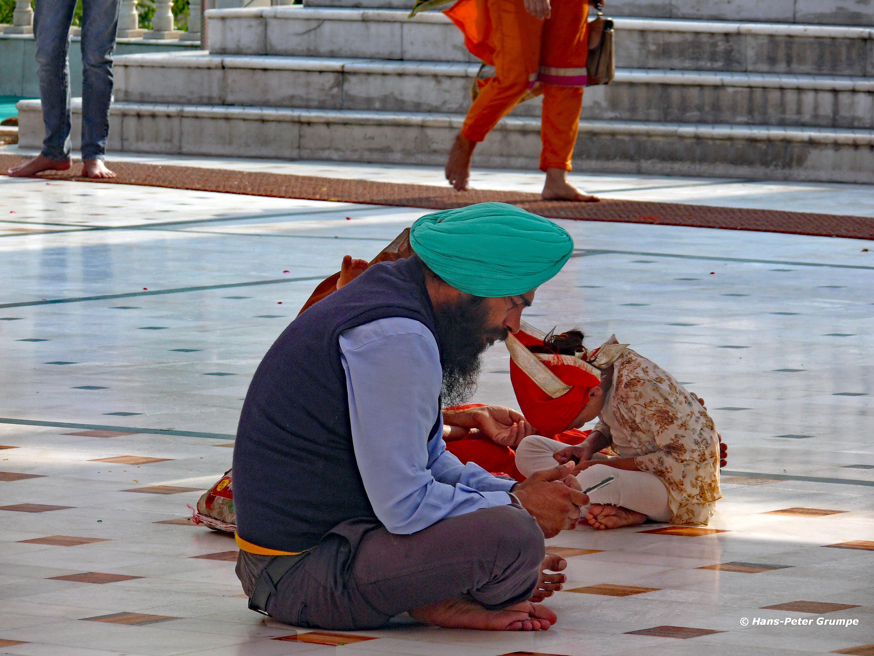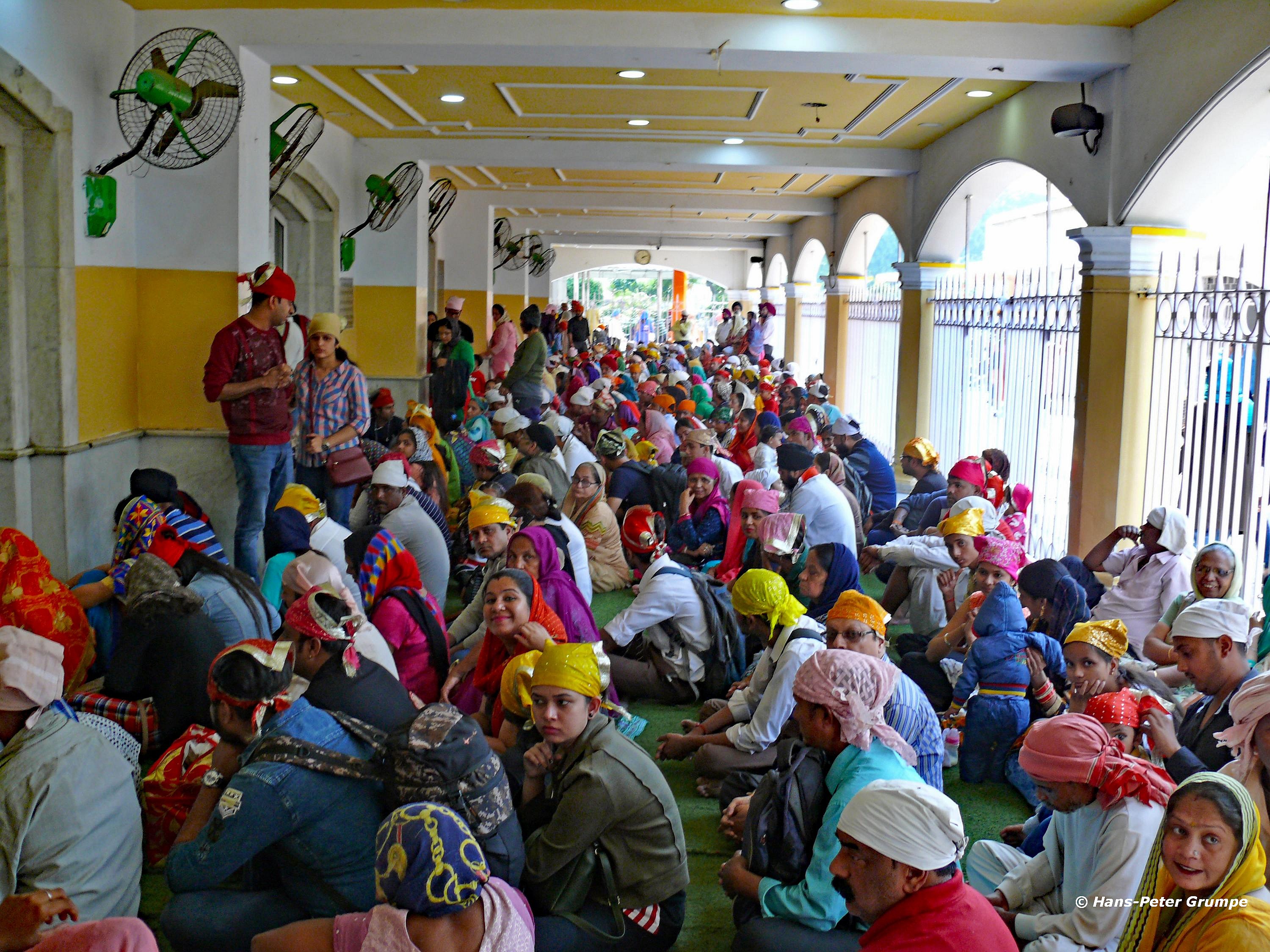 Neu Delhi: Gurudwara Bangla Sahib - Warten auf das Essen