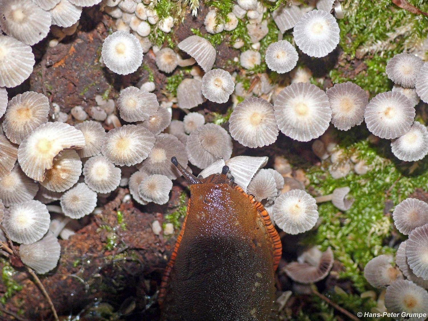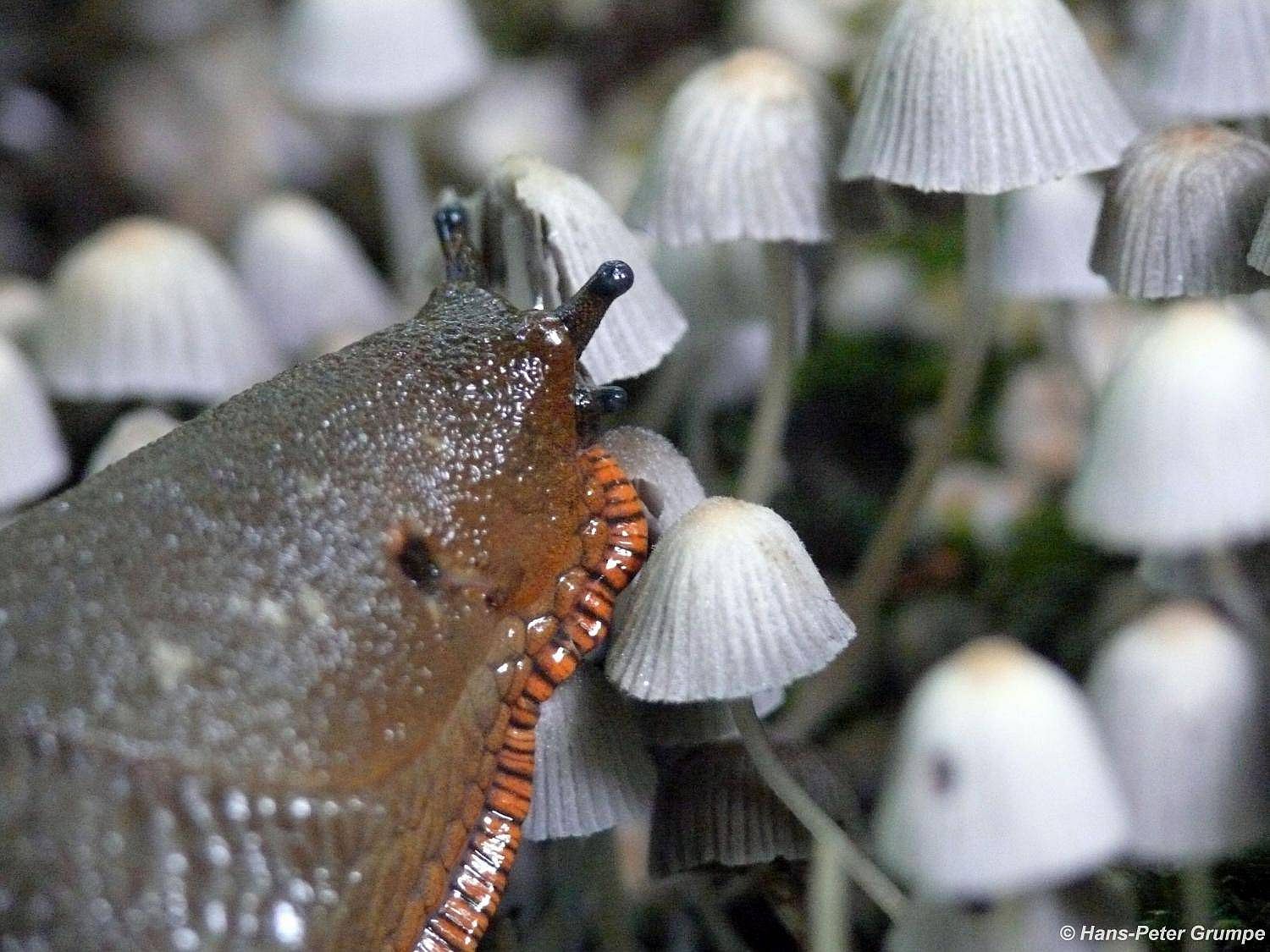 Nacktschnecke frisst Pilze