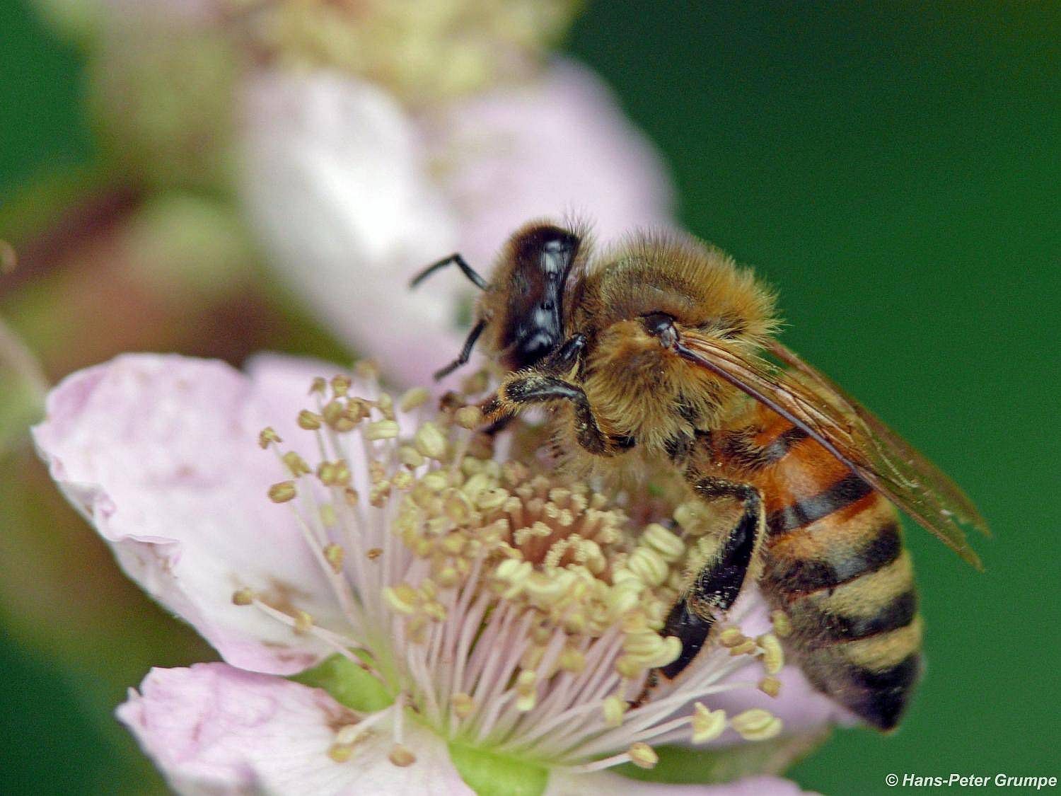 Hummel an Brombeerblüte