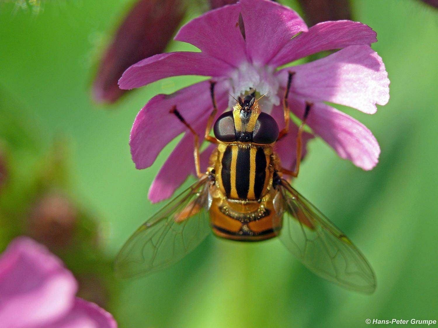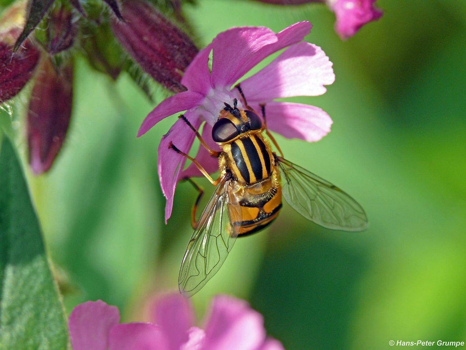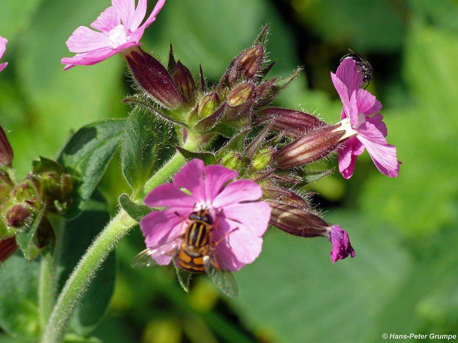 Rote Lichtnelke (Silene dioica) mit Sonnenschwebfliege (Helophilus pendulus)