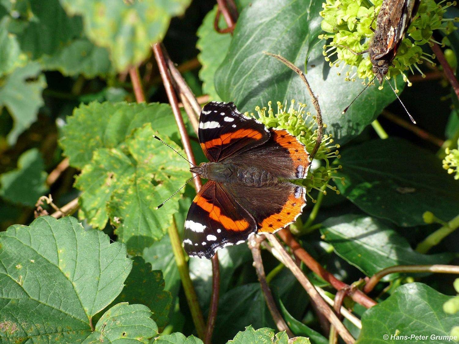 Admiral (Vanessa atalanta, syn. Pyrameis atalanta) auf Efeu-Blütenstand