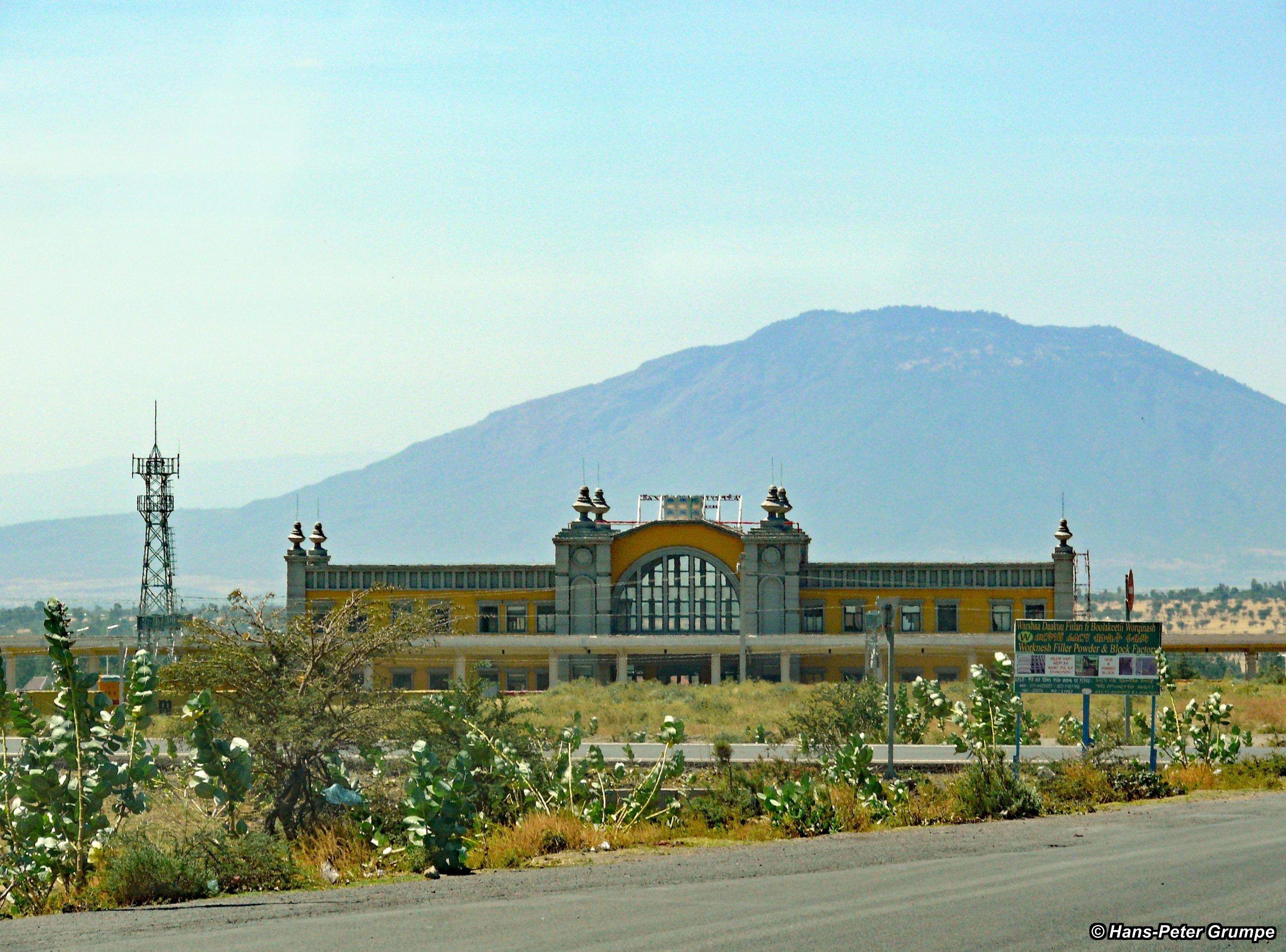 Fahrt nach Awassa: Bahnstrecke Addis Abeba - Dschibuti, Bahnhof im chinesischen Stil