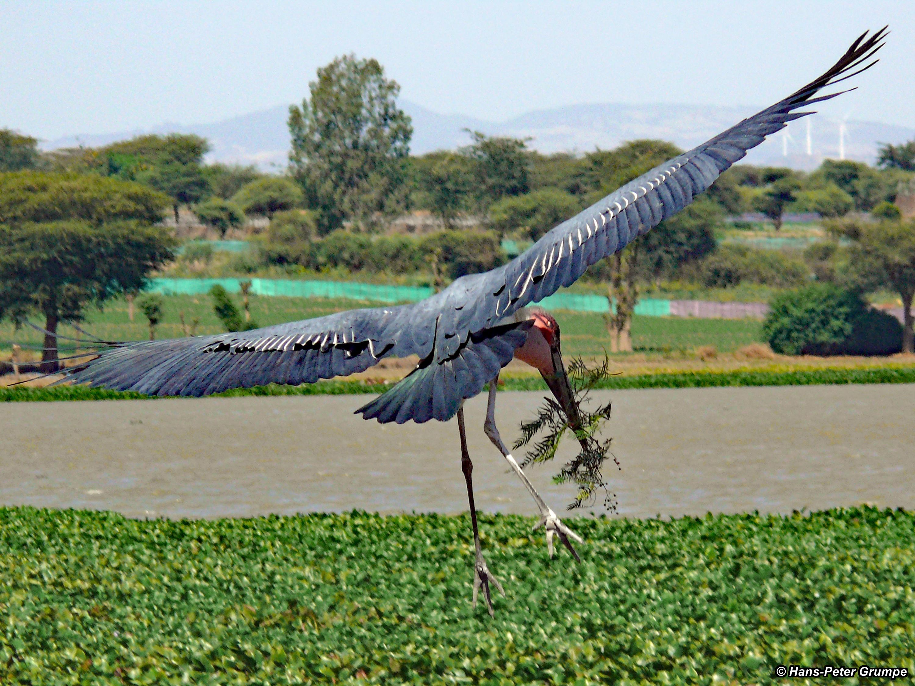 Fahrt nach Awassa: Marabu im Anflug mit Zweig