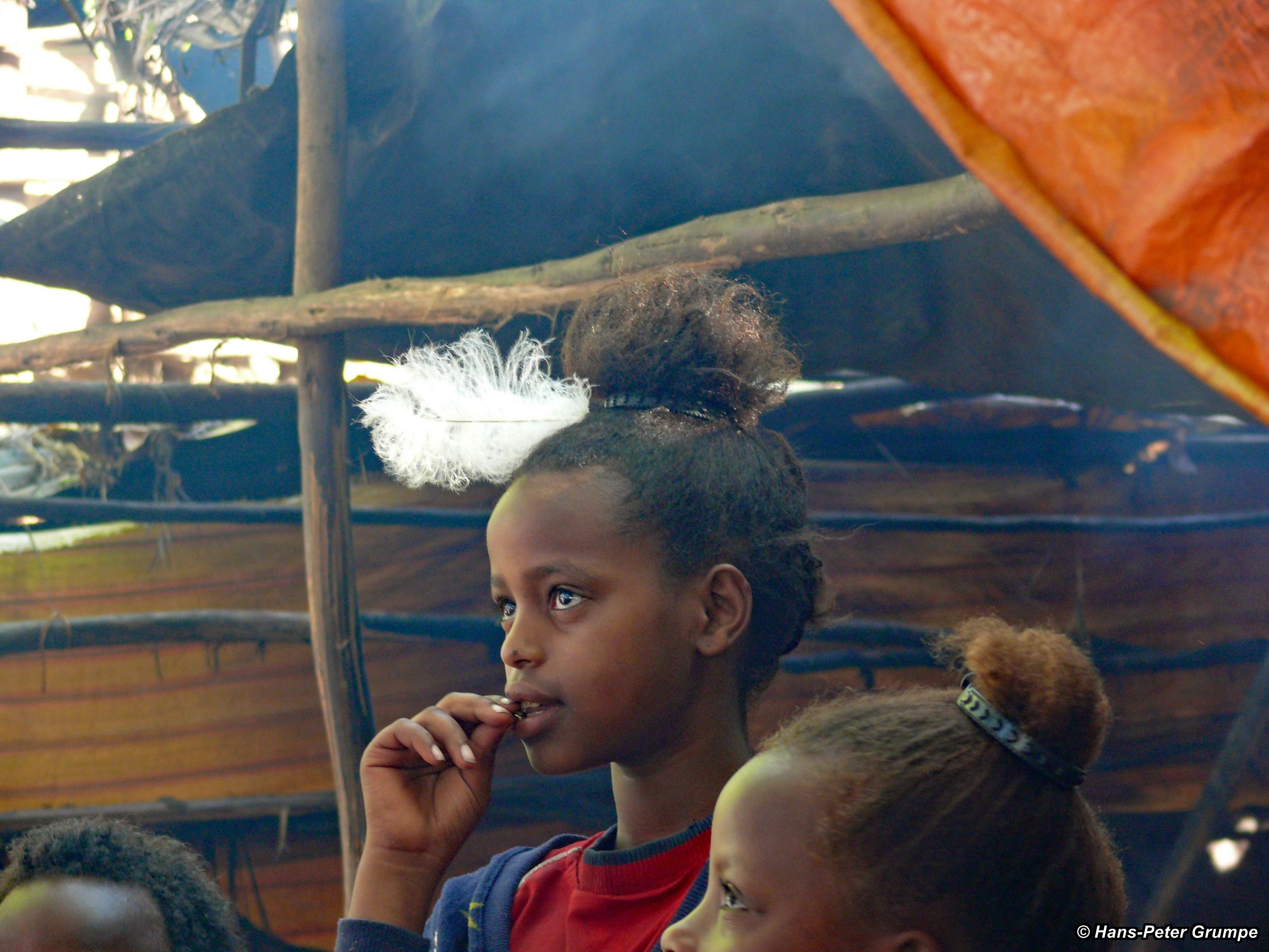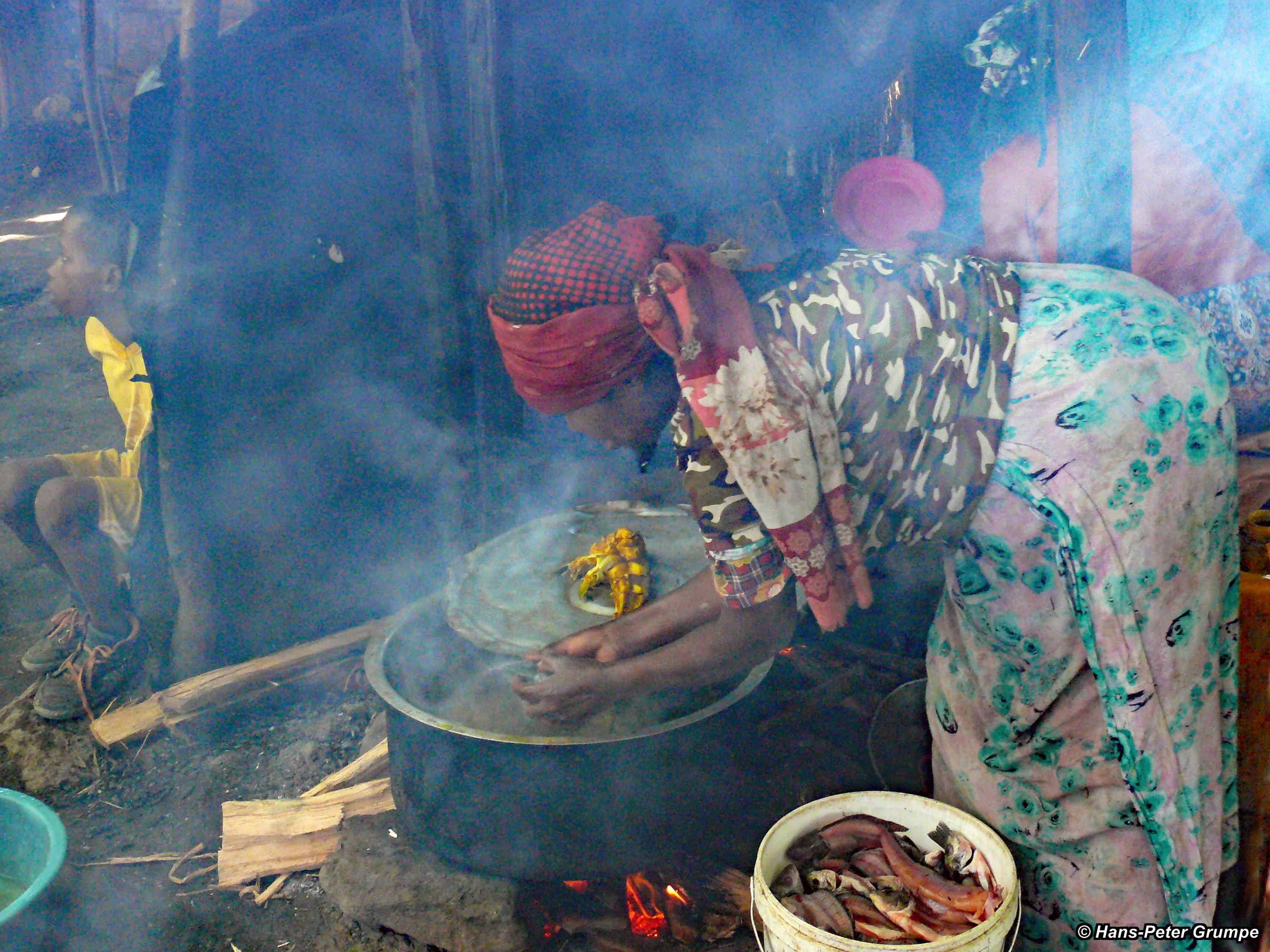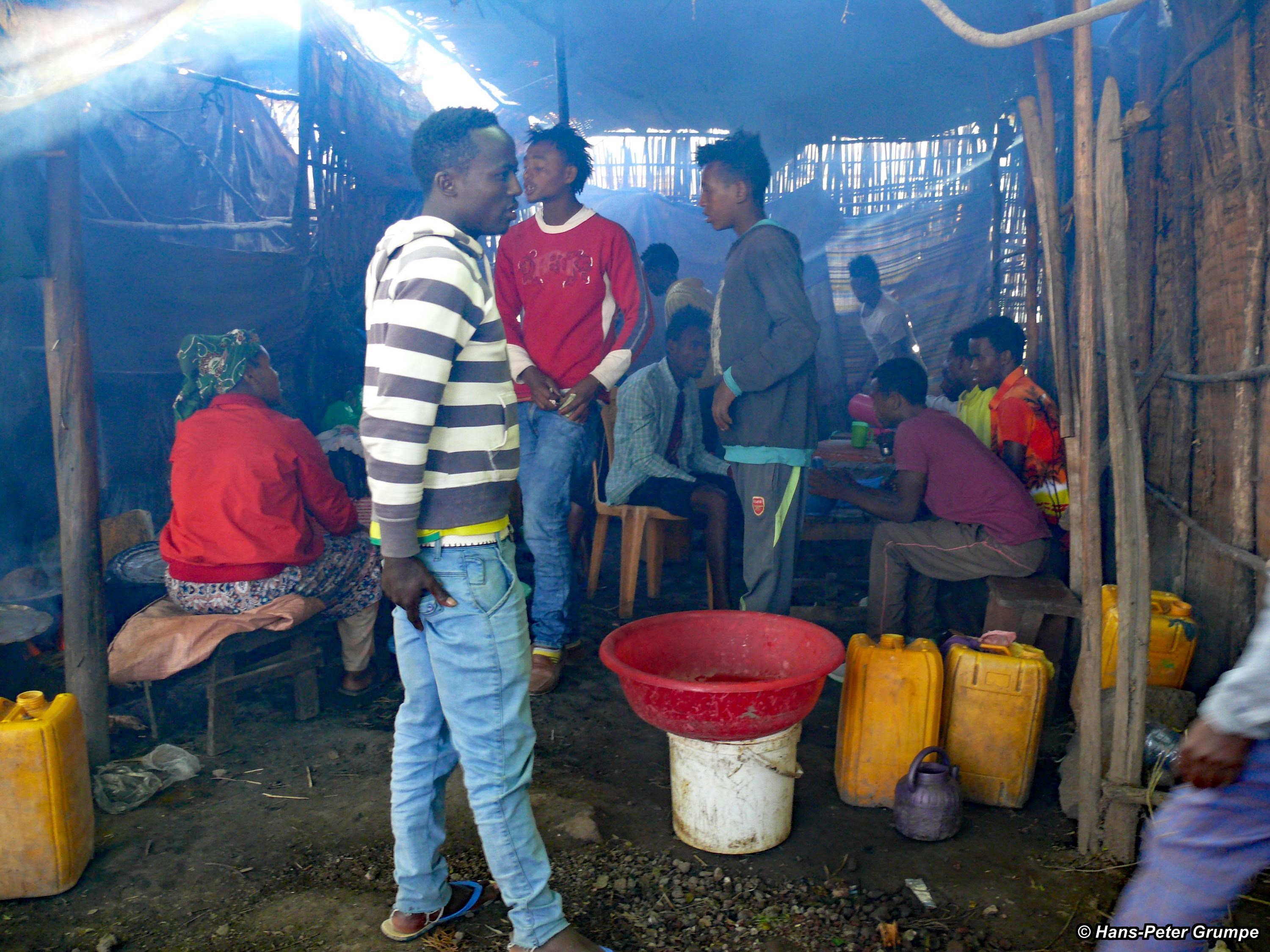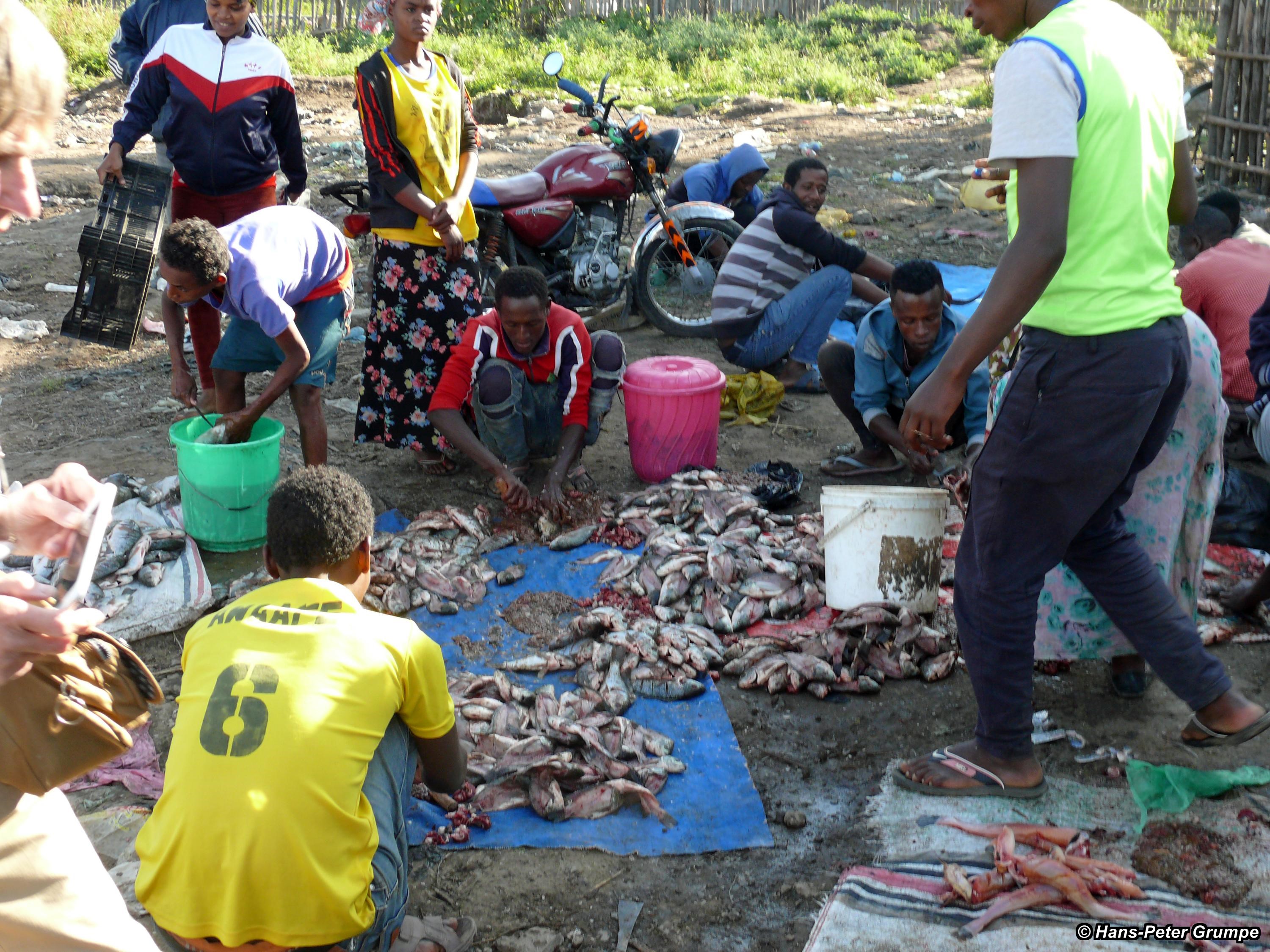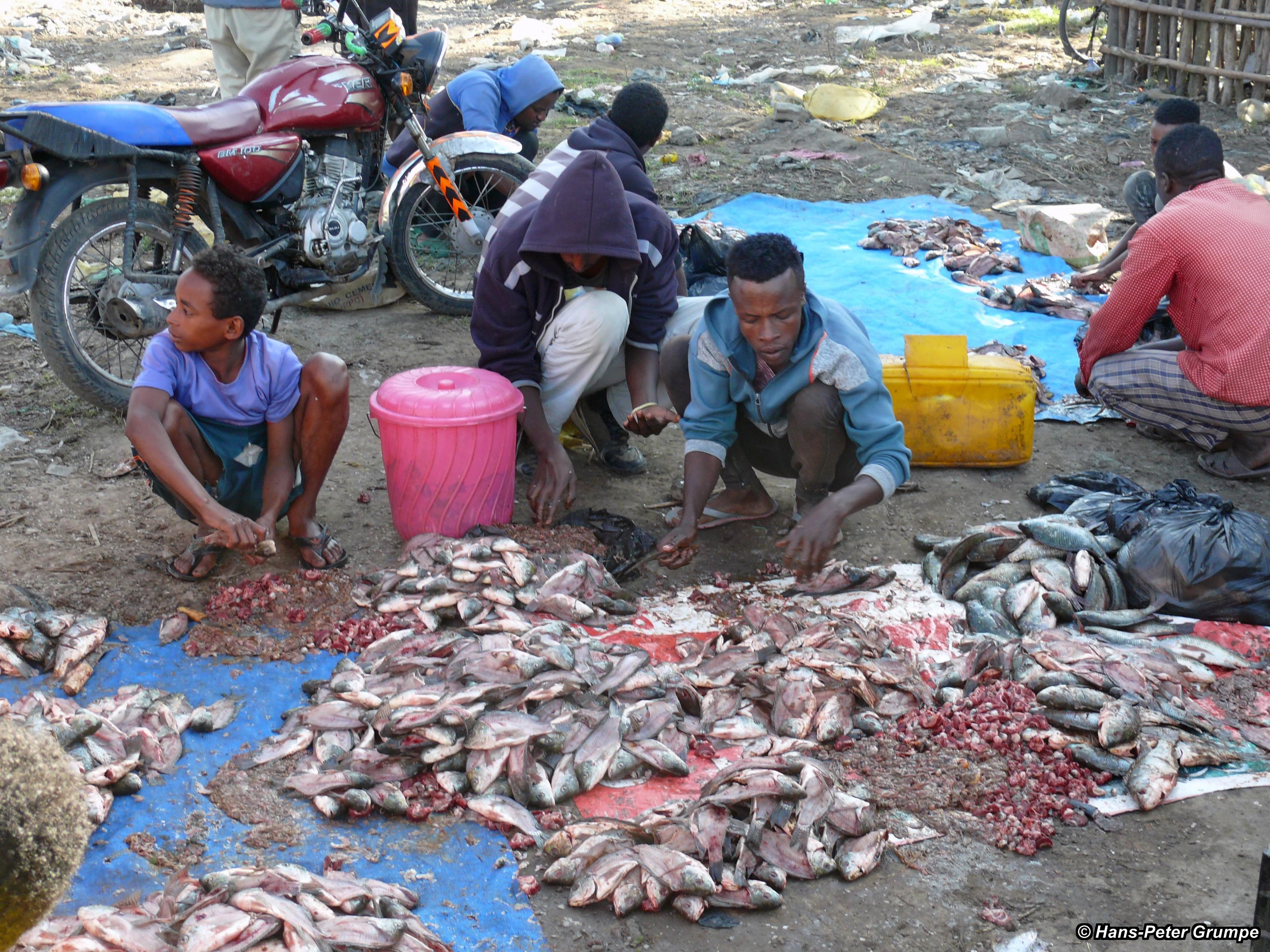 Awassa-See: Fischmarkt - Jugendliche beim Essen