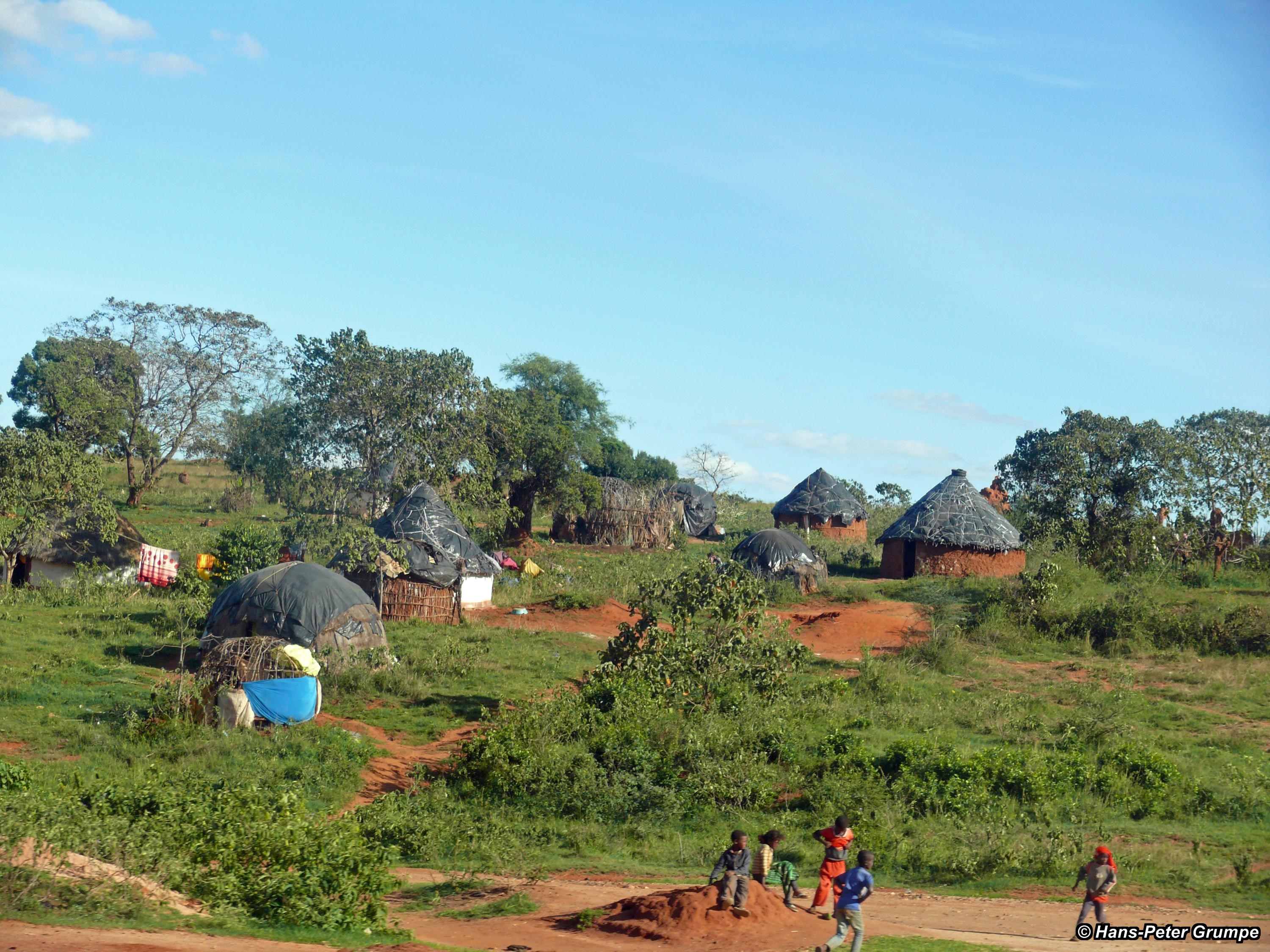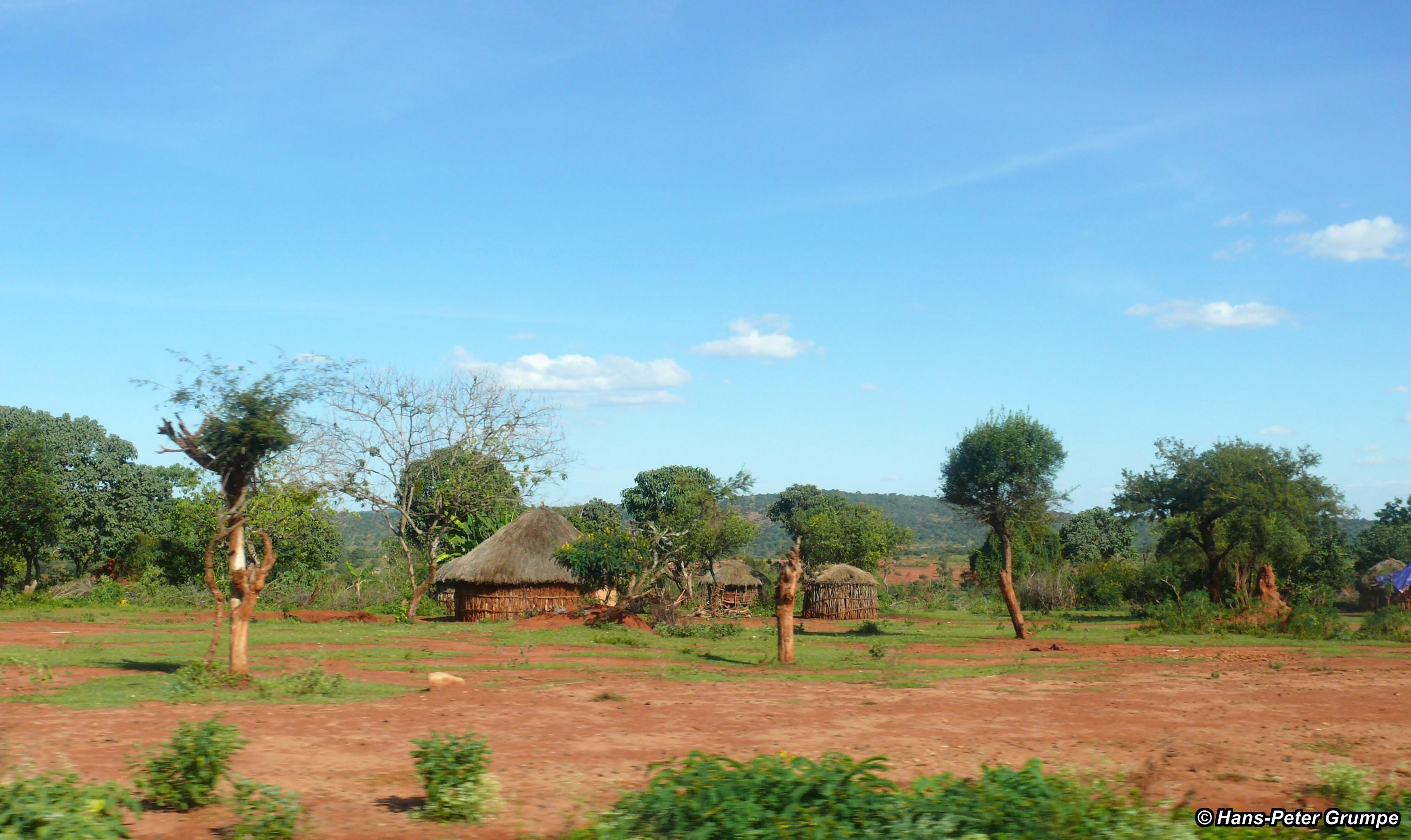Auf dem Weg nach Konso: Straßenbilder, aus dem fahrenden Auto fotografiert - Rundhütten