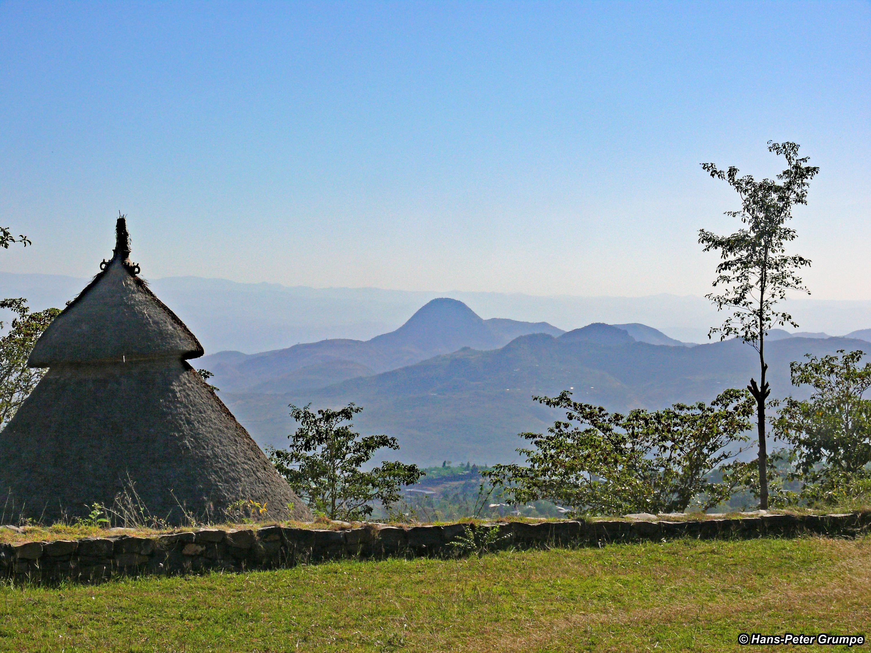 Konso: Blick von der Kanta-Lodge auf die Landschaft im Morgendunst
