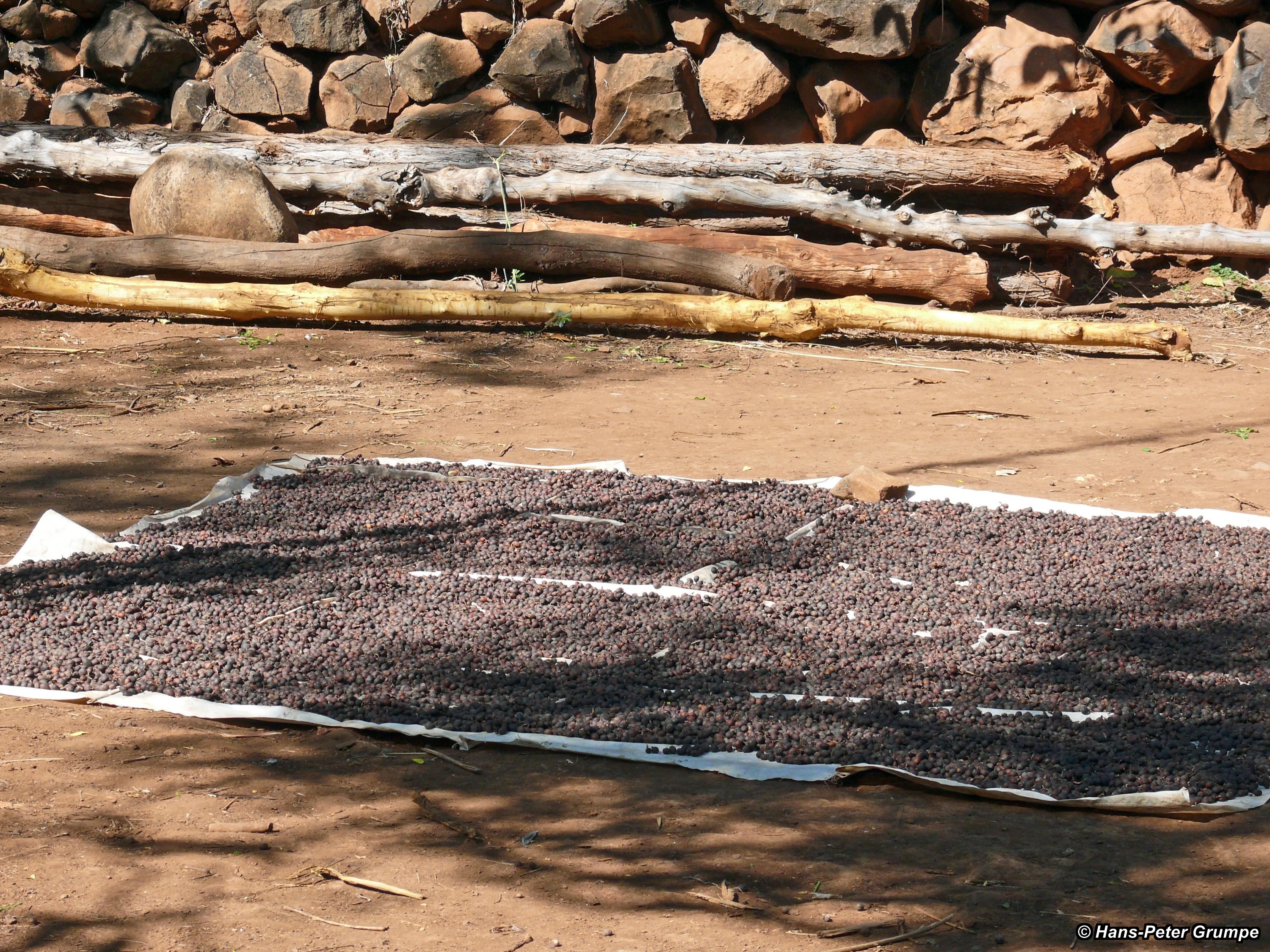Konso: Dorf Gamule - Kaffebeeren werden getrocknet