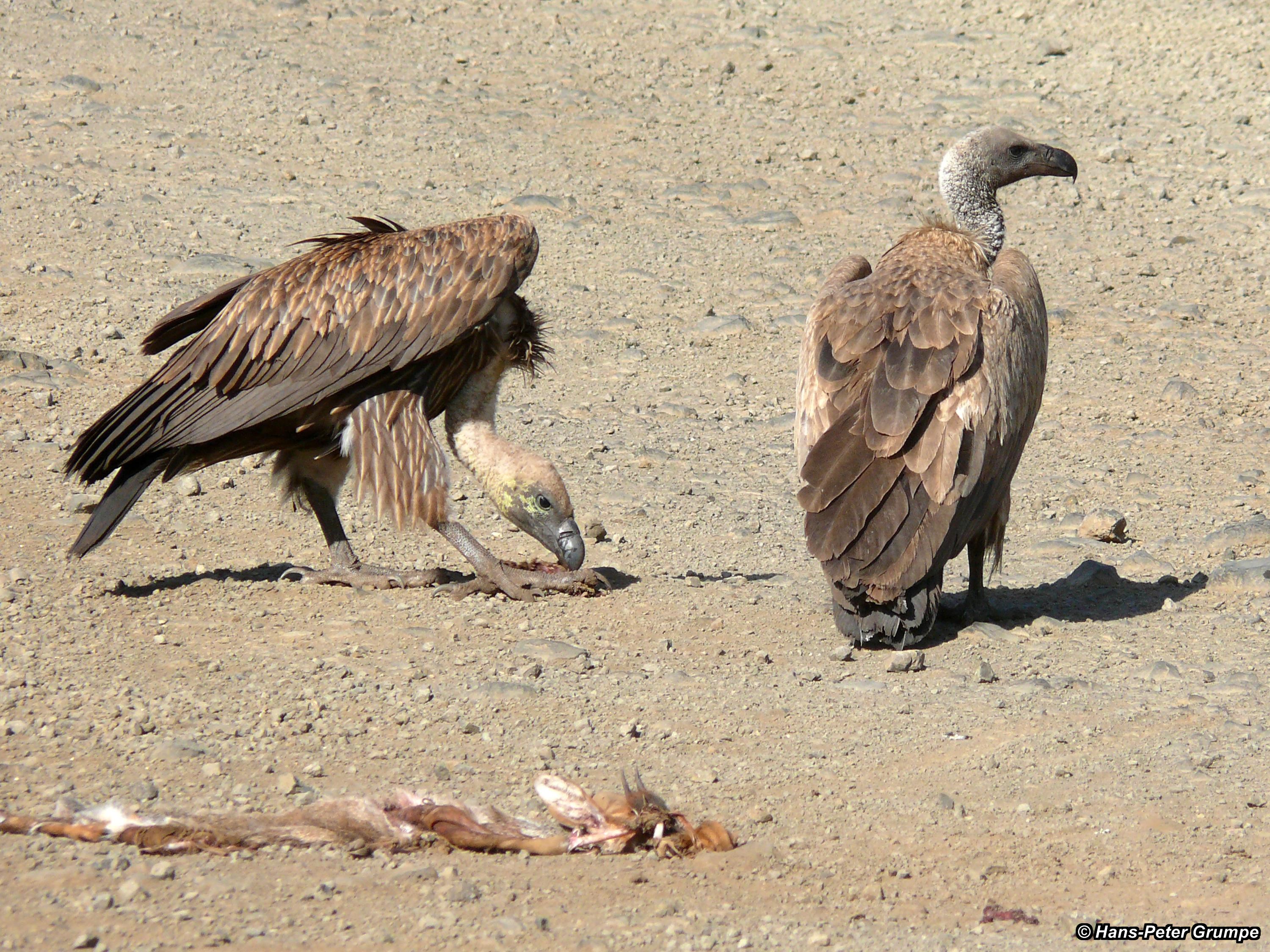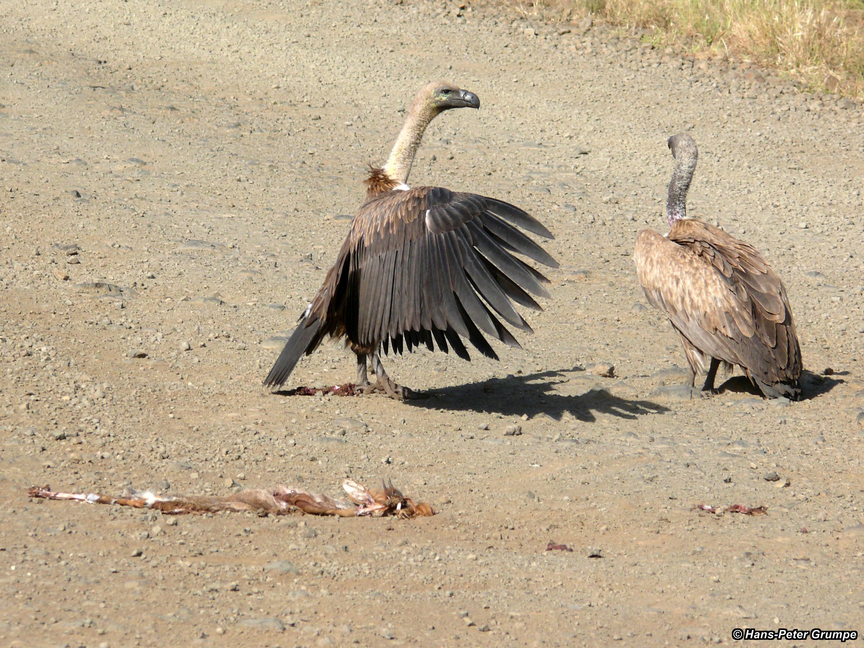 Auf dem Weg zu den Mursi: Geier (Sperbergeier?) mit Aas