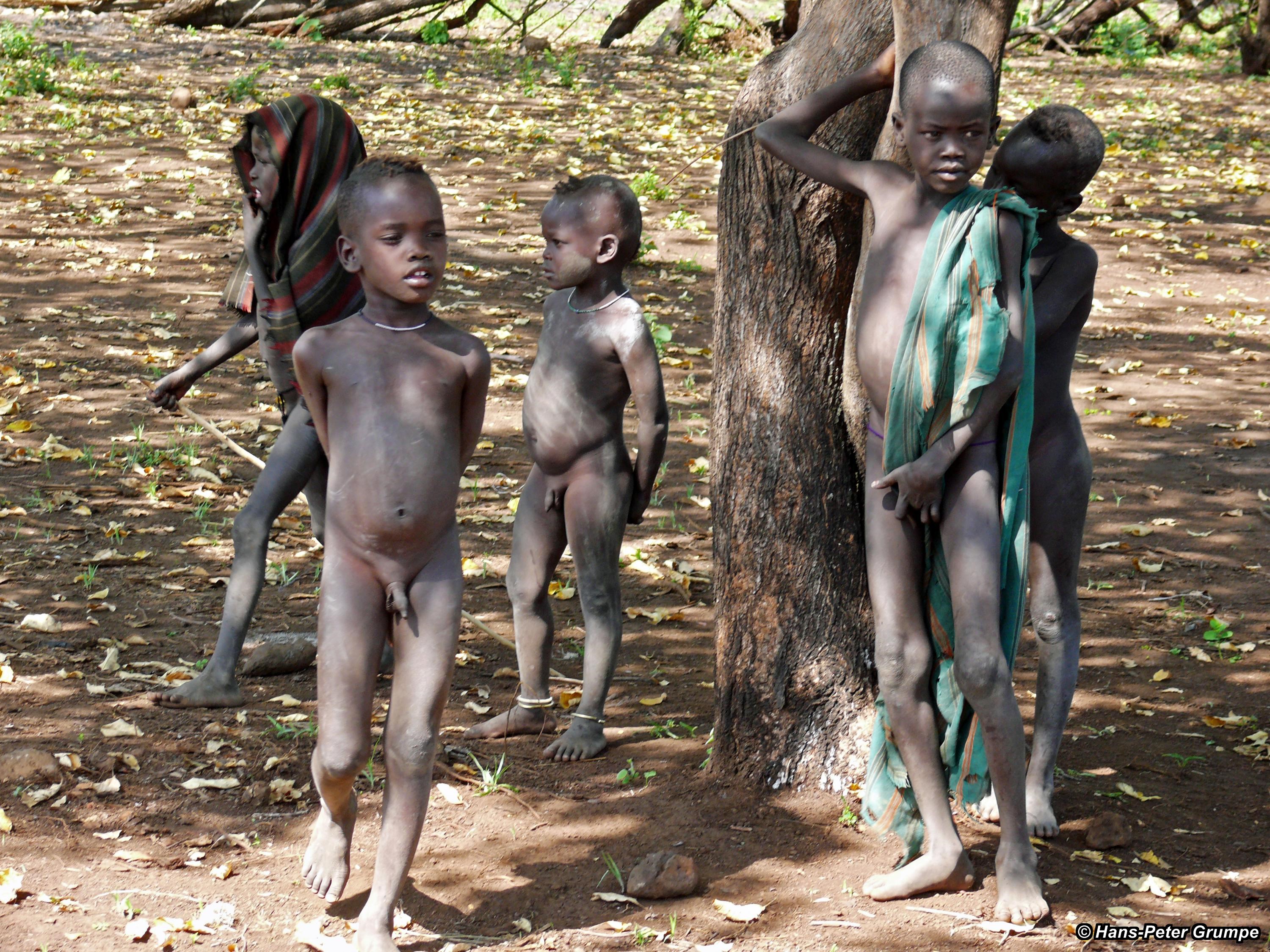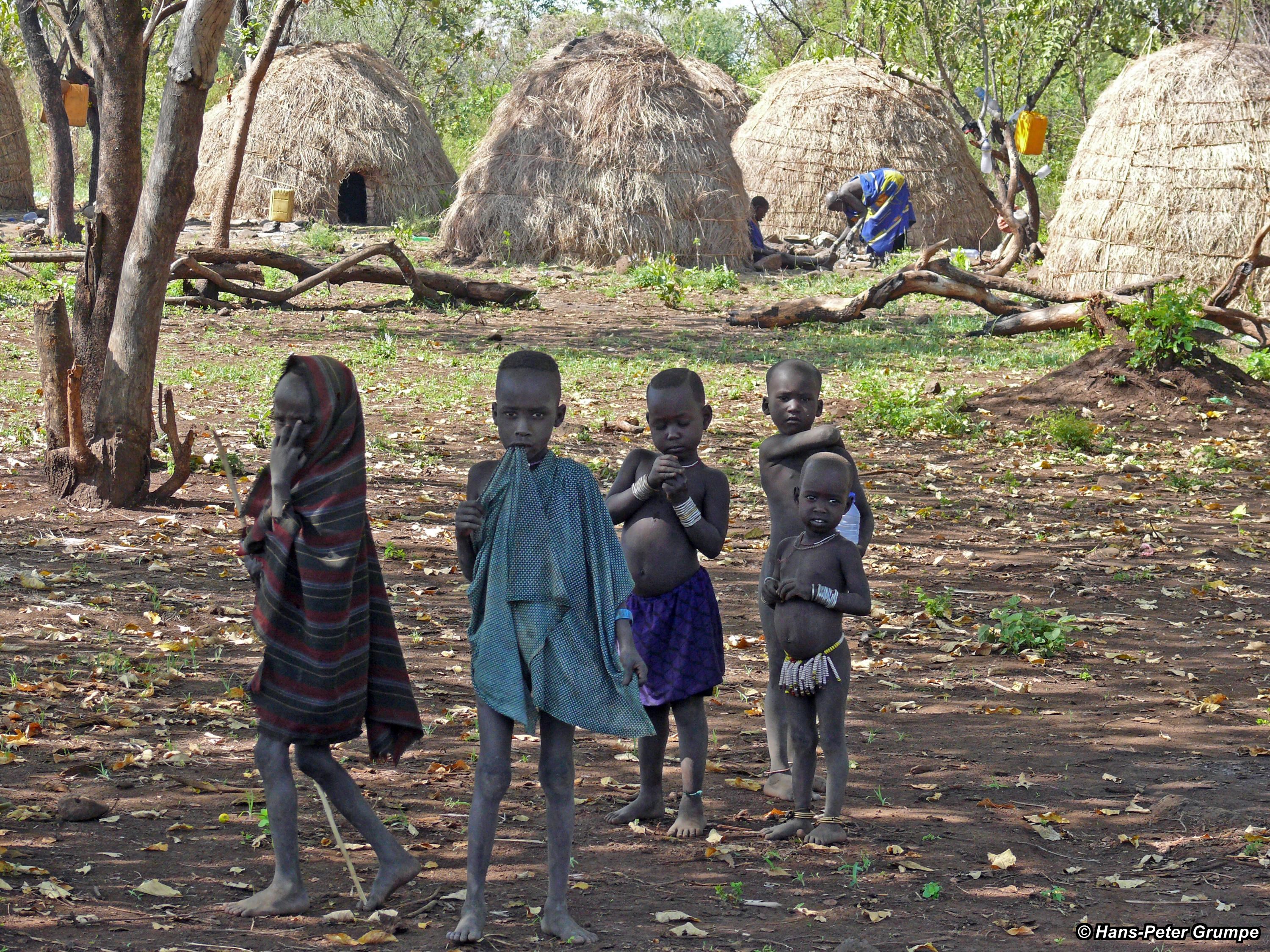 Mursi-Siedlung: Begrüßung durch die Kinder