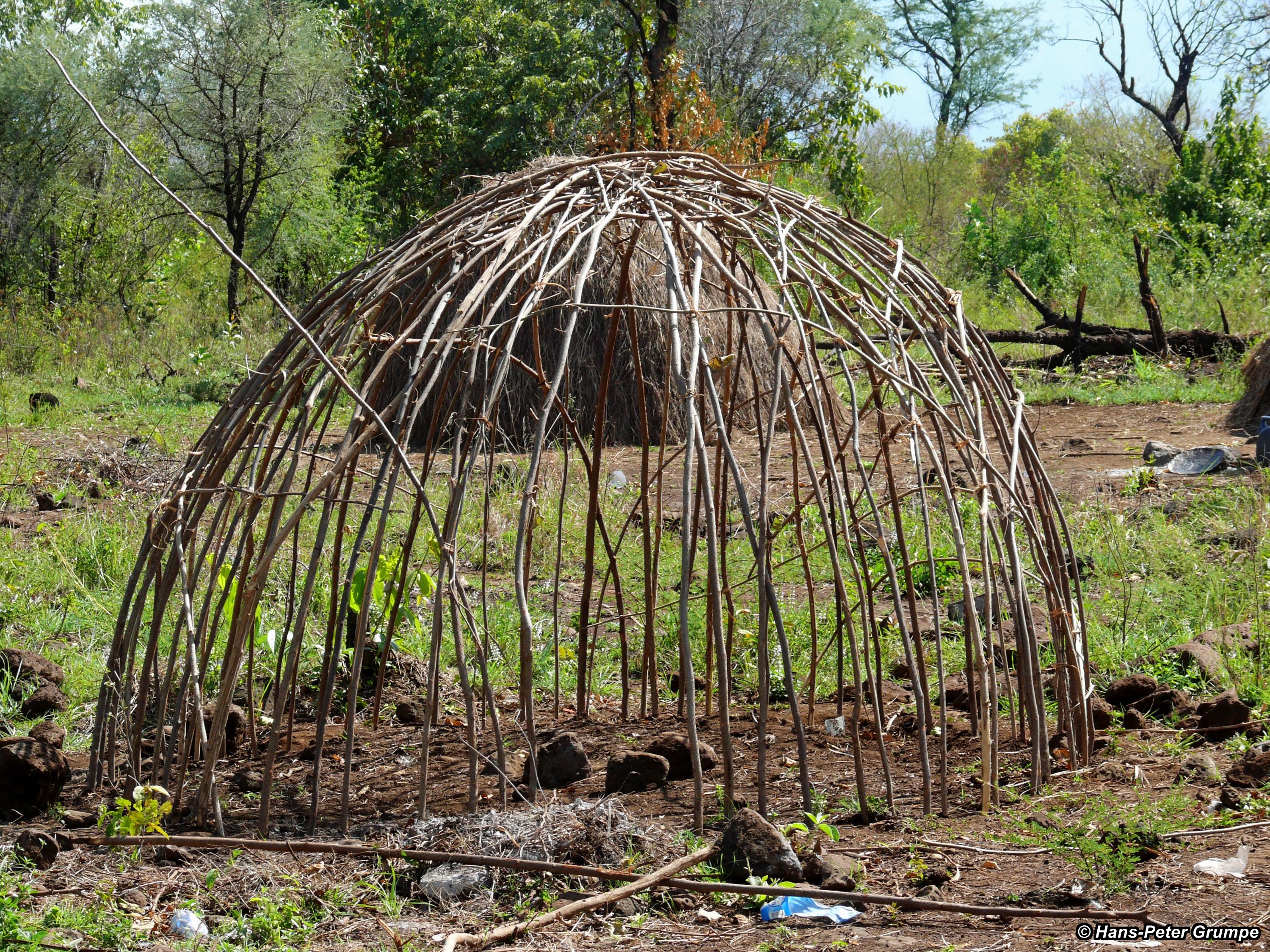 Mursi-Hütte im Bau