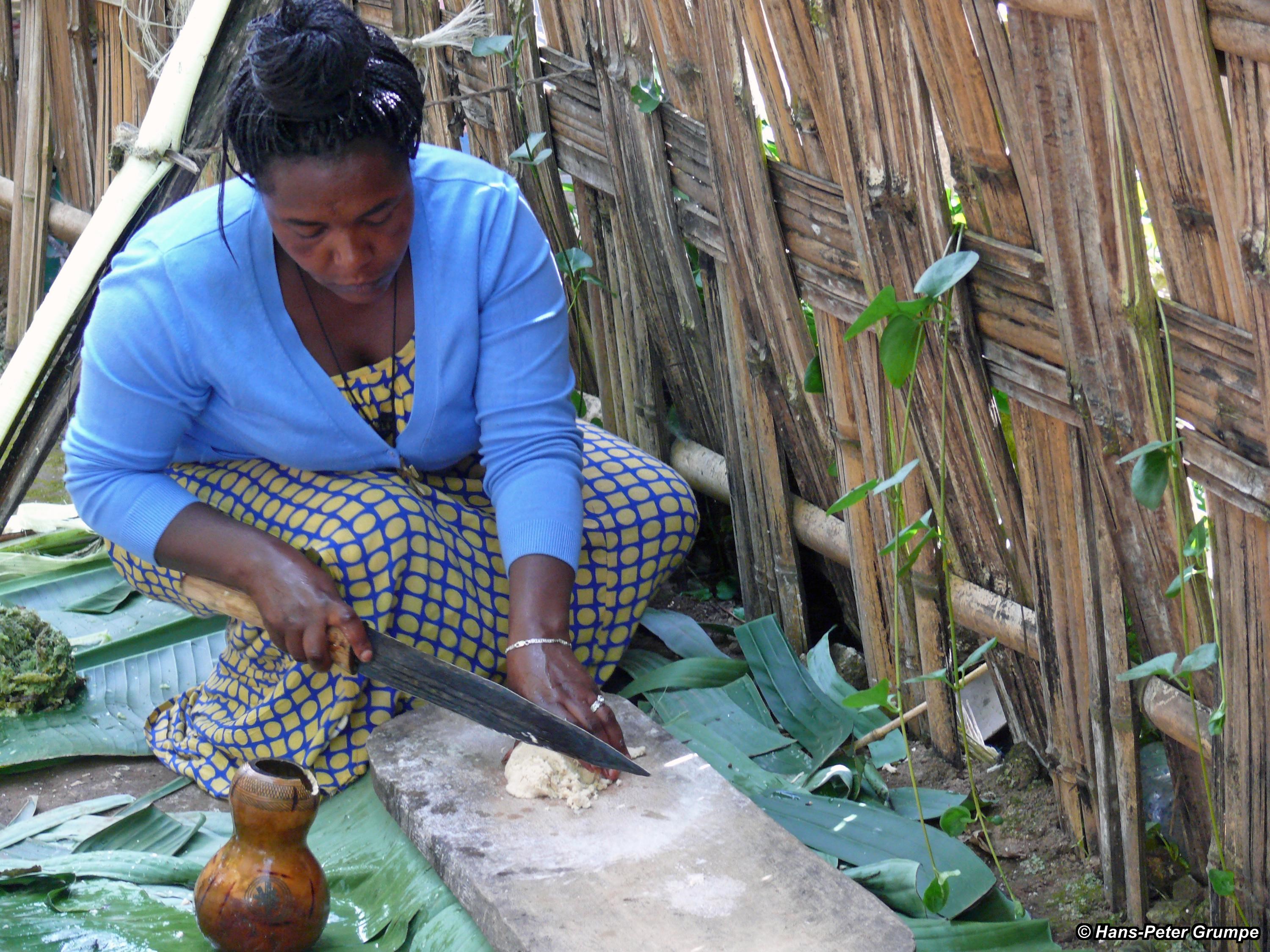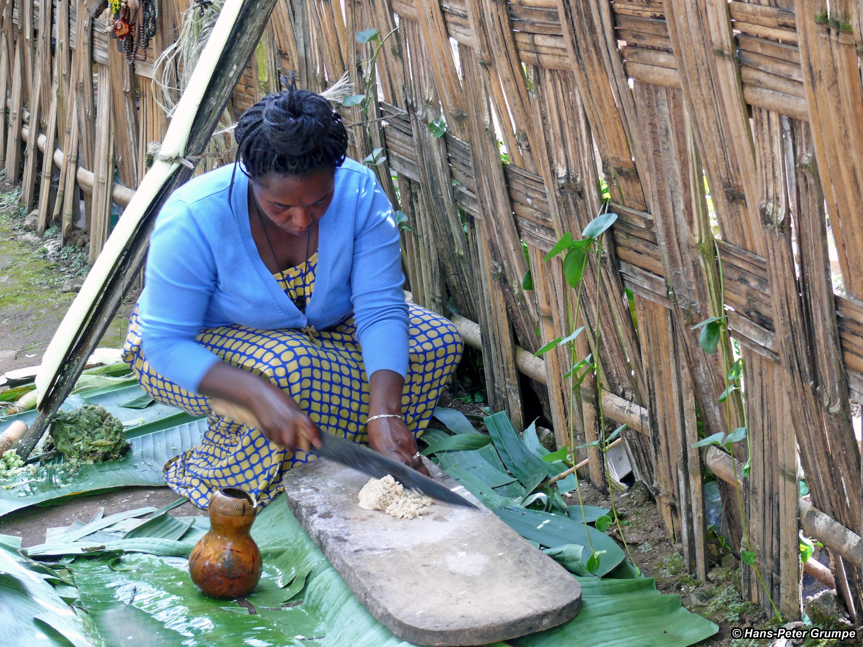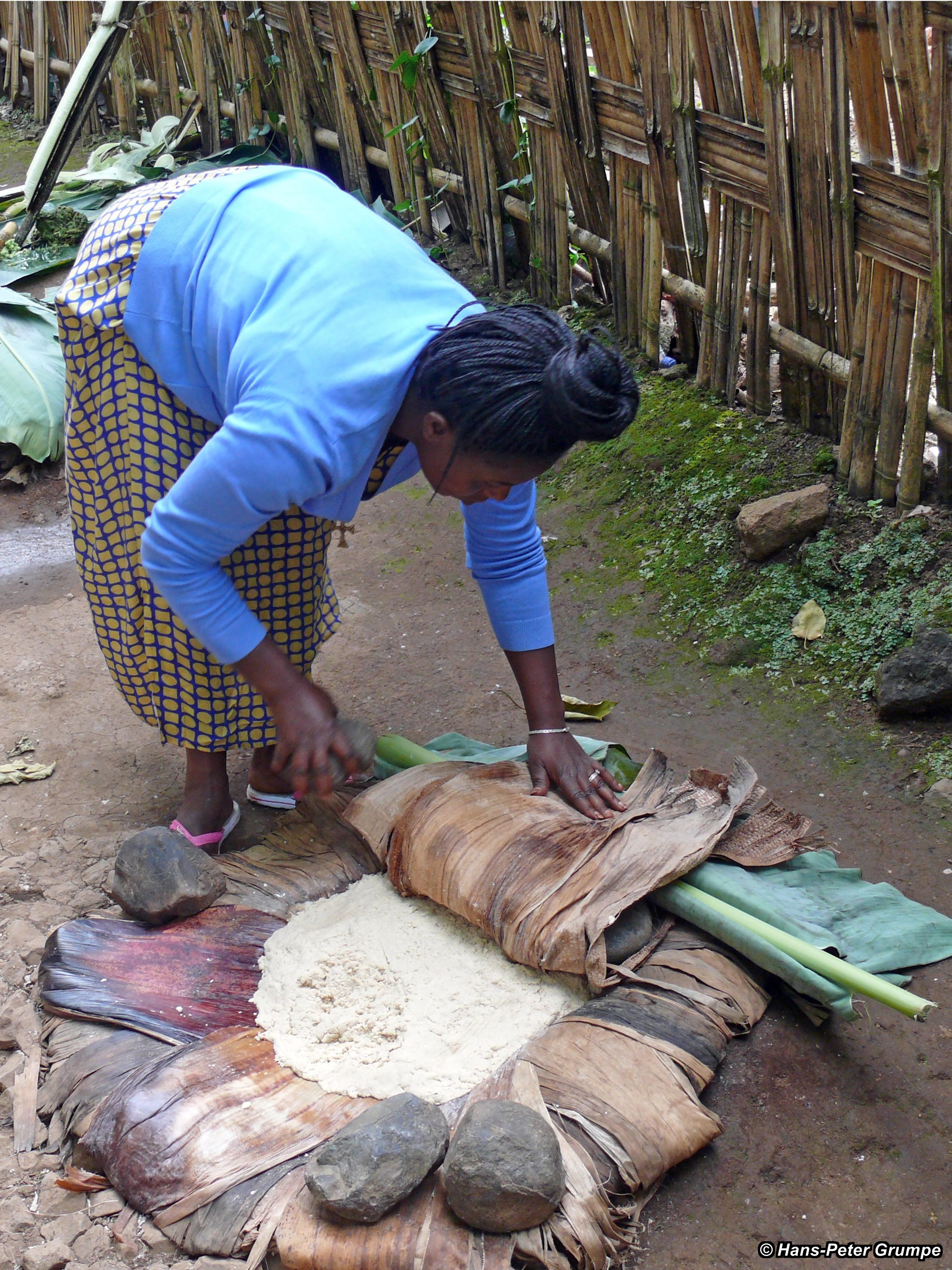 Dorze: Verarbeitung der 'Falschen Banane' - Teig für Brot