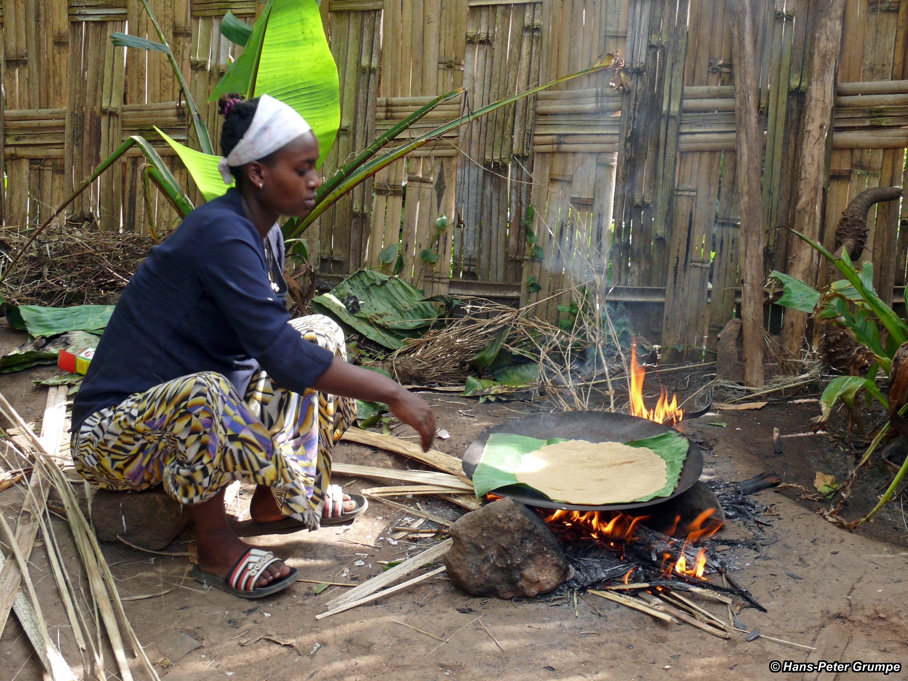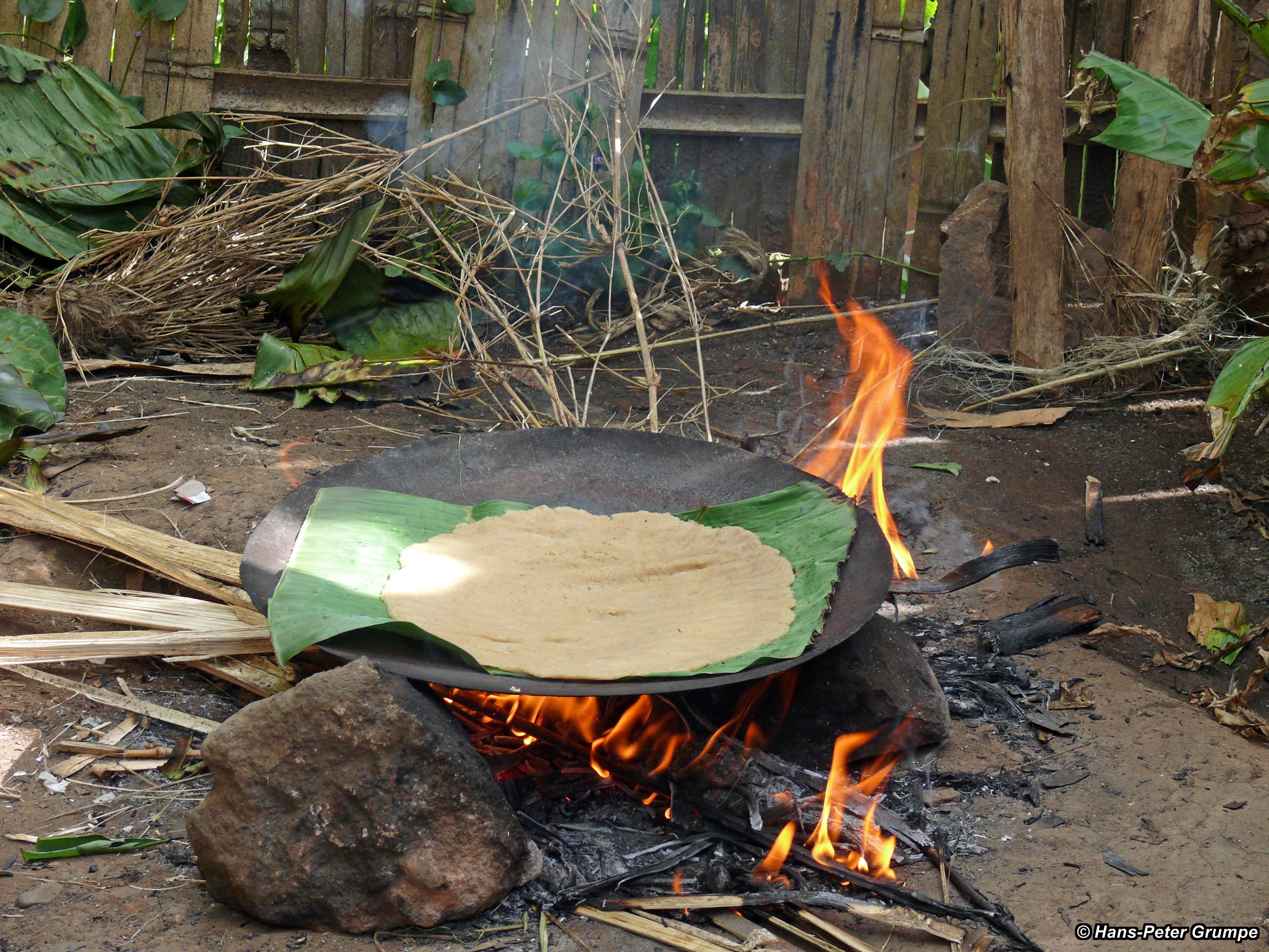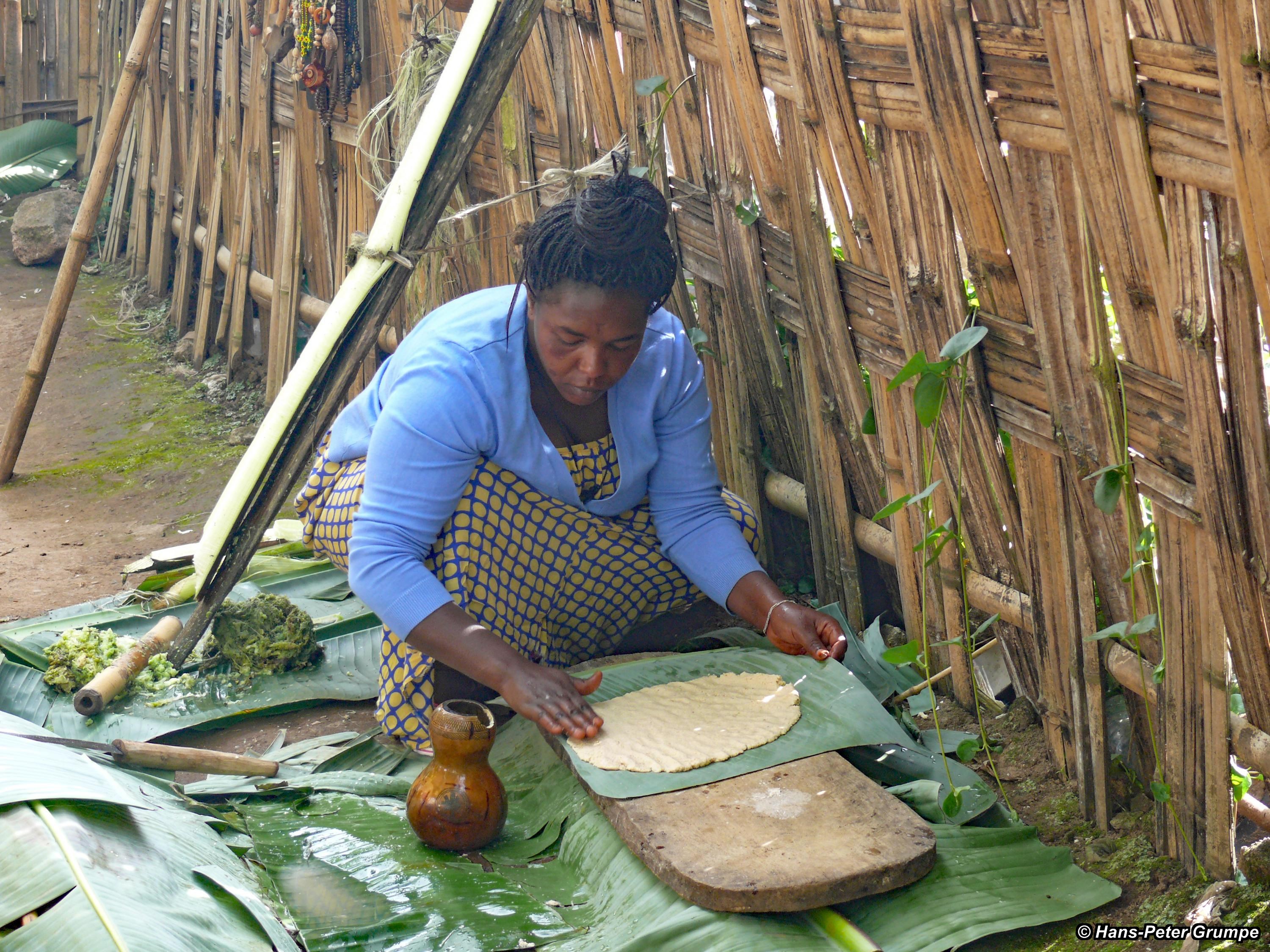 Dorze: Verarbeitung der 'Falschen Banane' - Backen des Brotes