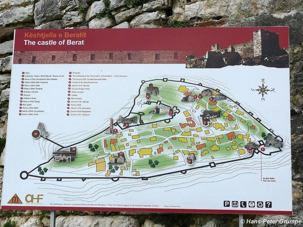 Burg von Berat, Kalaja - Plan: Das Burgviertel besteht noch heute aus zahlreichen bewohnten kleinen Häuschen, verwinkelten Gassen und diversen Kirchen
