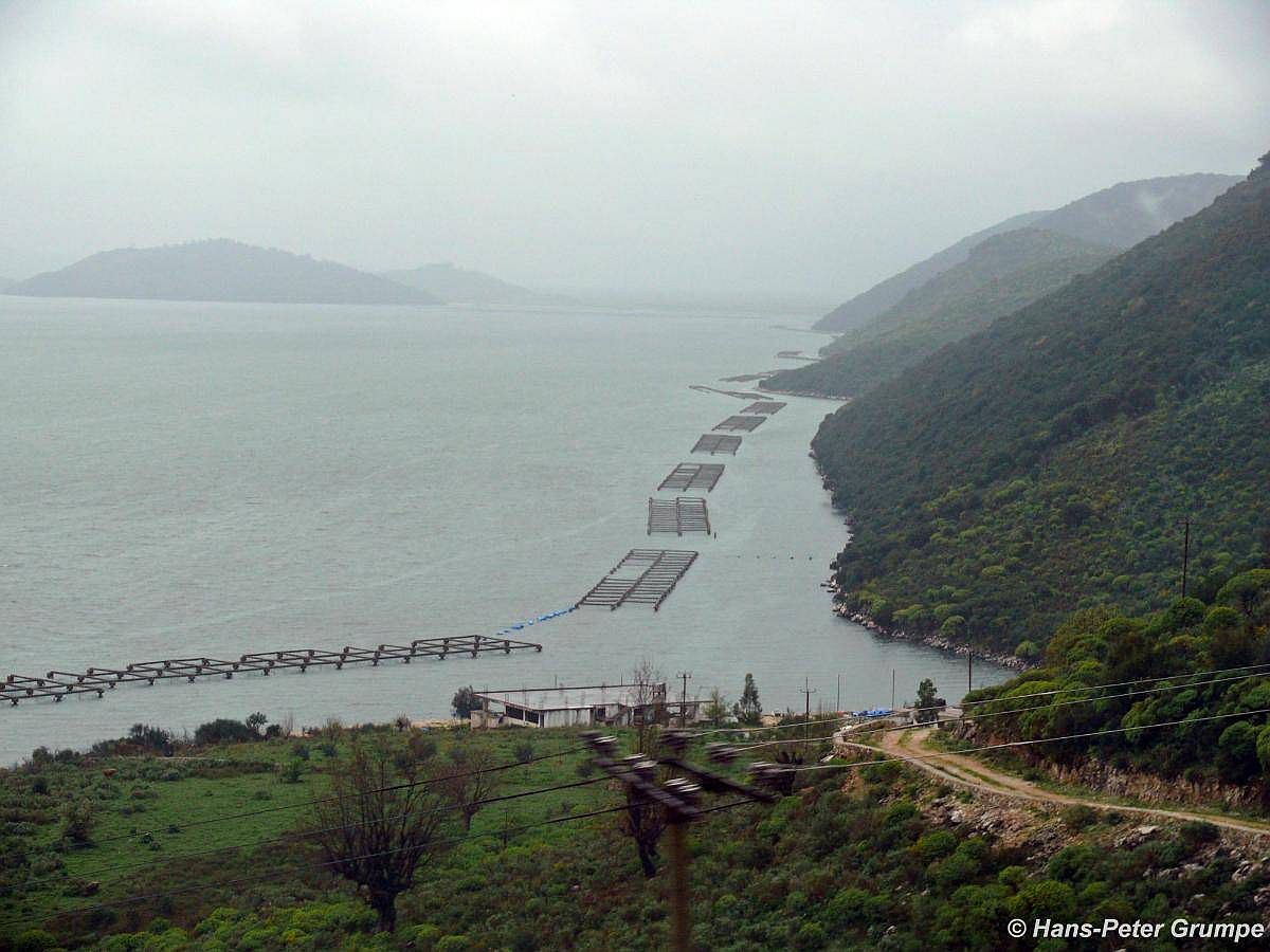 Küste bei Butrint: Fisch- und Muschelzuchten an der Küste