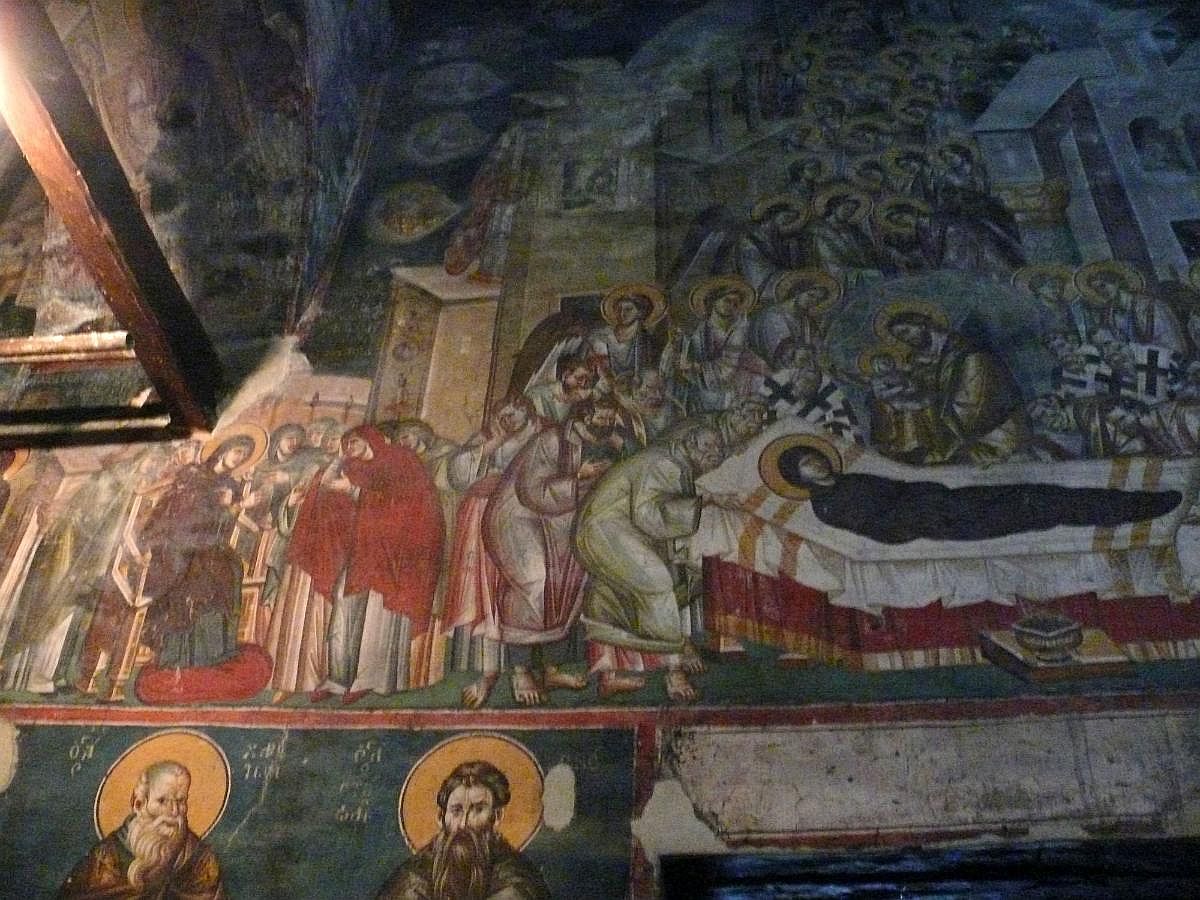 Peribleptos-Kirche (Heilige-Gottesmutter-vom-Spital-Kirche), Fresken, Maria entschlafen - © G. Weis