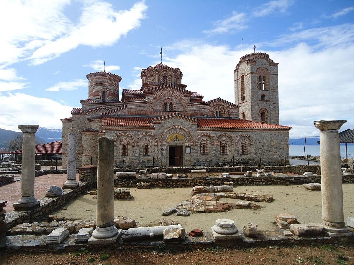 Ohrid: Ruinen der ehemaligen Klosteranlage St. Kliment und neue Kirche St. Kliment und Panteleon