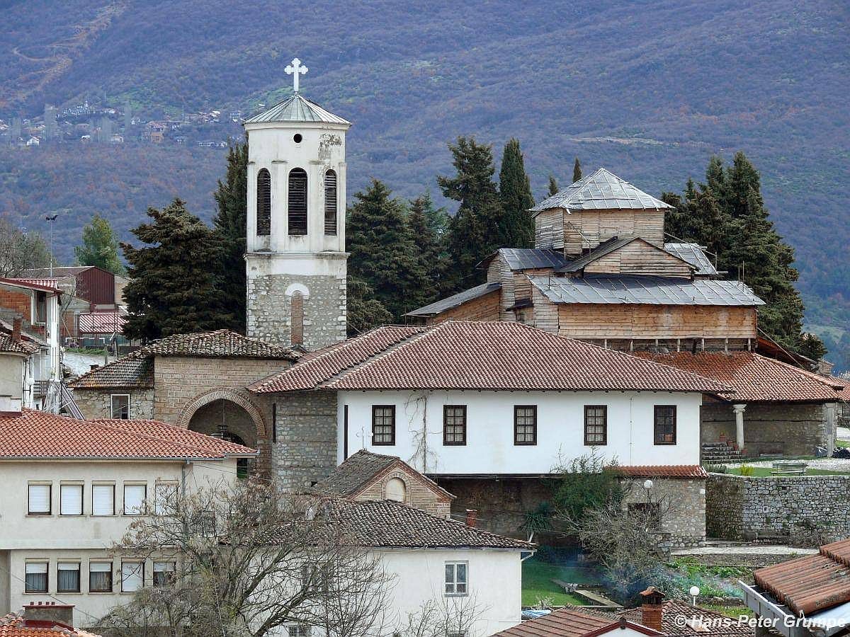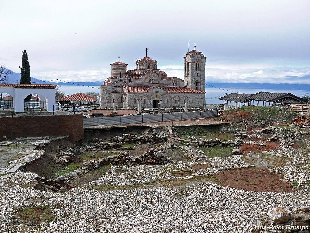 Ohrid: Ruinen der ehemaligen Klosteranlage St. Kliment und neue Kirche St. Kliment und Panteleon - © P.W: Herrmann