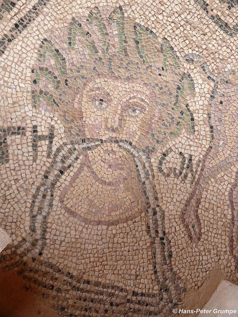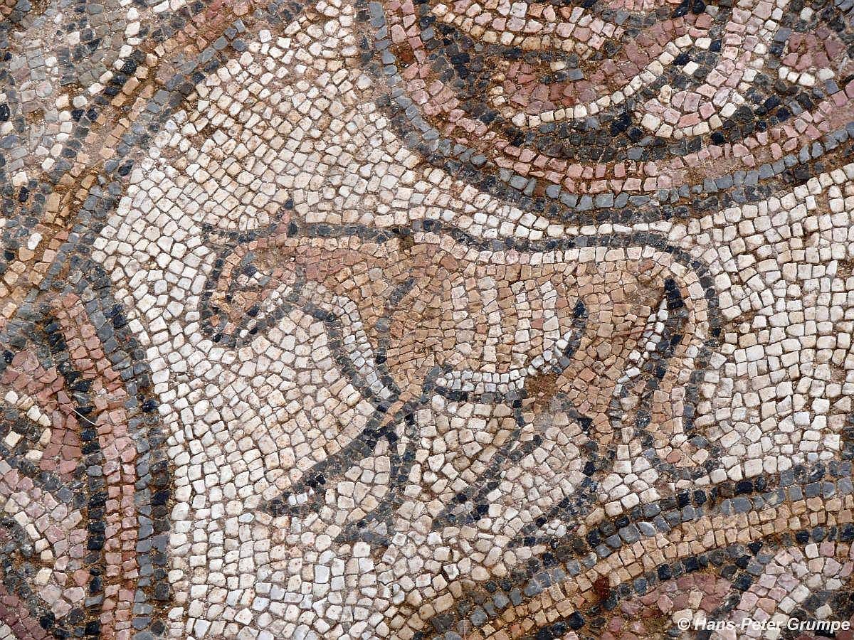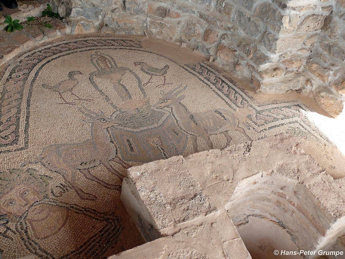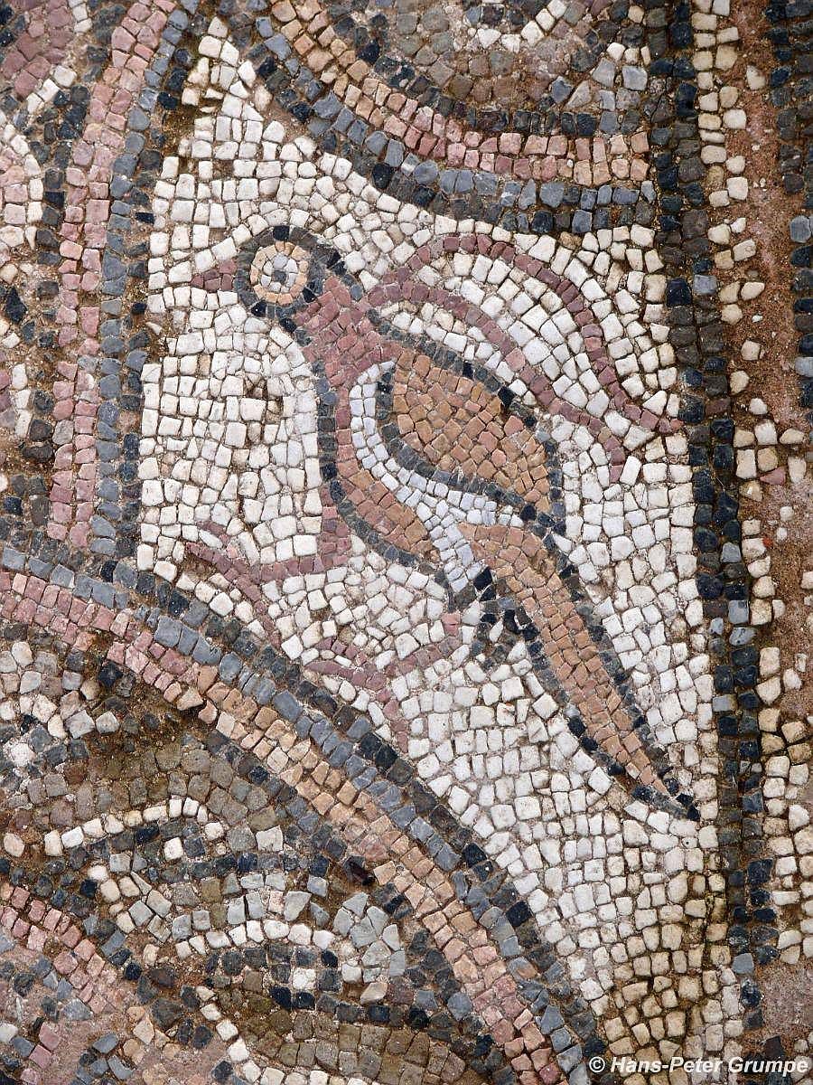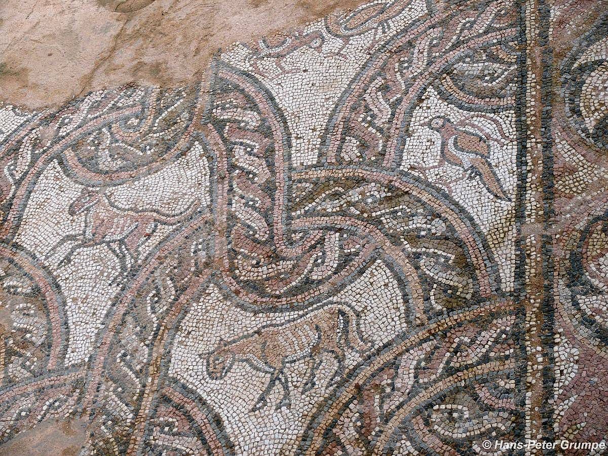 Ohrid: Reste der ehemaligen Kirche - Taufbecken, Mosaiken - Darstellung des Euphrat - © G. Weis