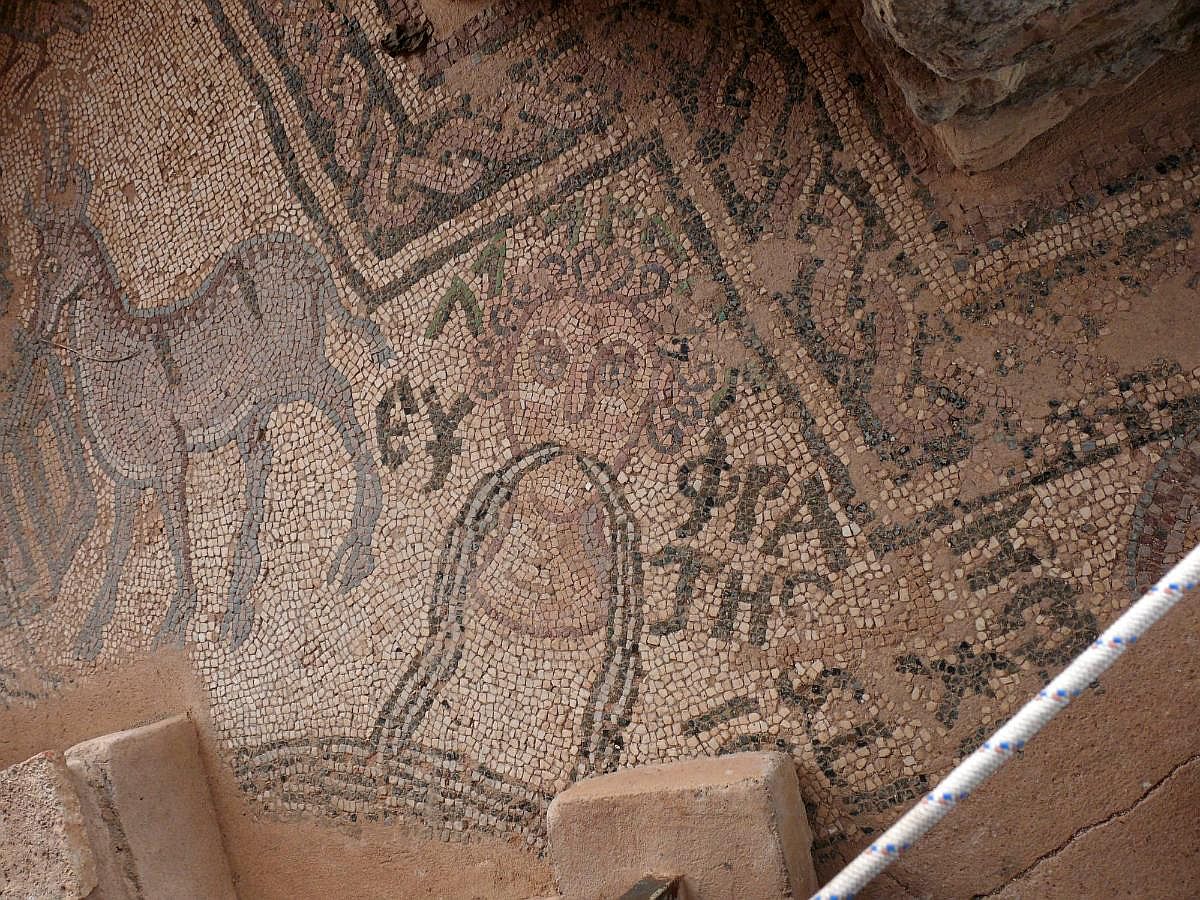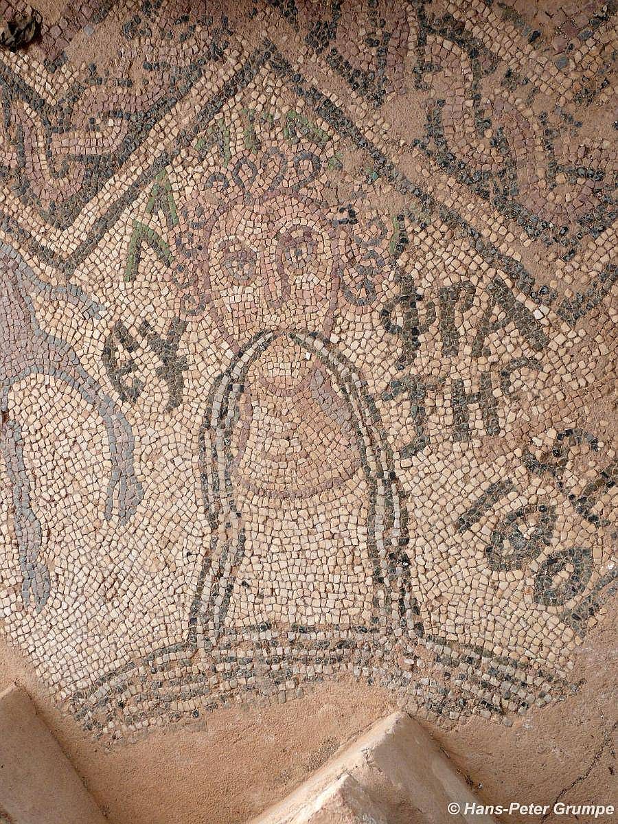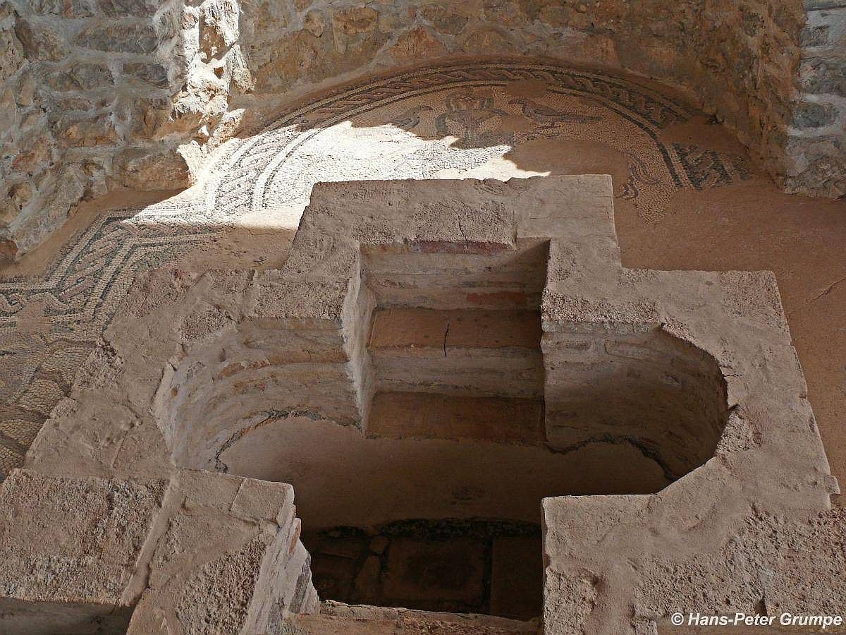 Ohrid: Reste der ehemaligen Kirche - Taufbecken, Mosaiken - Darstellung des Euphrat