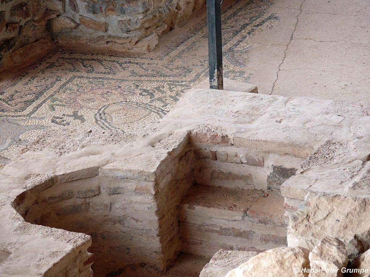 Ohrid: Reste der ehemaligen Kirche - Bodenmosaiken, Taufbecken