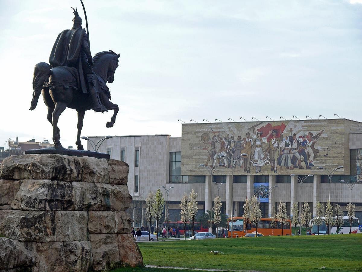 Skanderbeg-Denkmal, dahinter das historische Nationalmuseum - © G. Weis