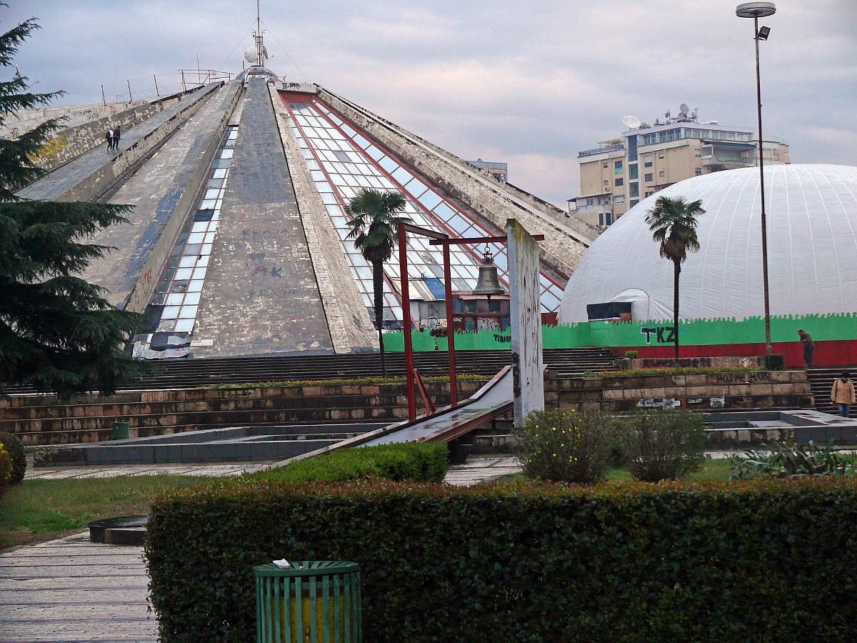 Die 'Pyramide' - ehemals Enver-Hoxha-Museum, dann Internationales Kulturzentrum, 1988 eröffnet, soll für einen Parlamentsneubau abgerissen werden - © L. Krome-Feicht