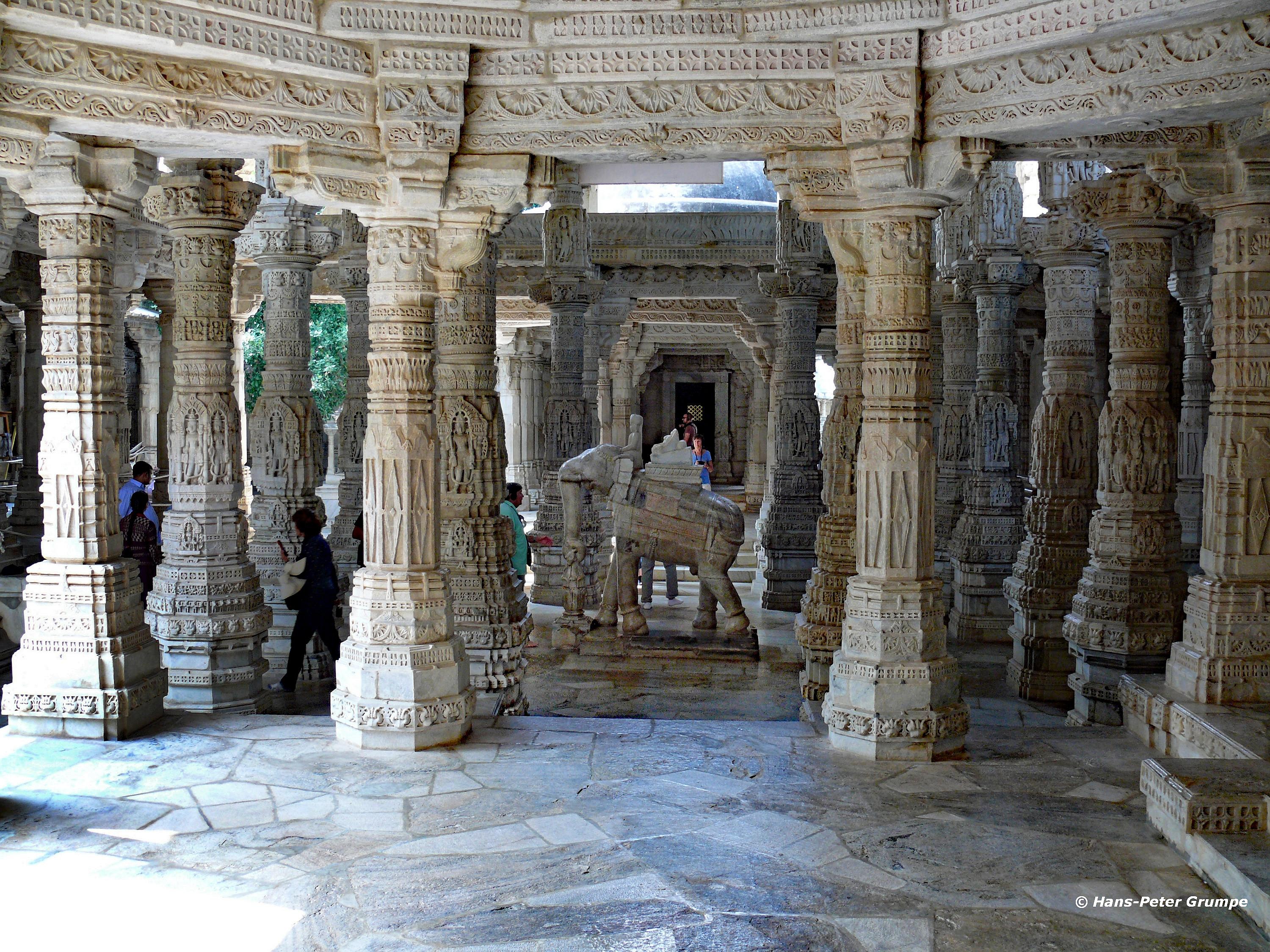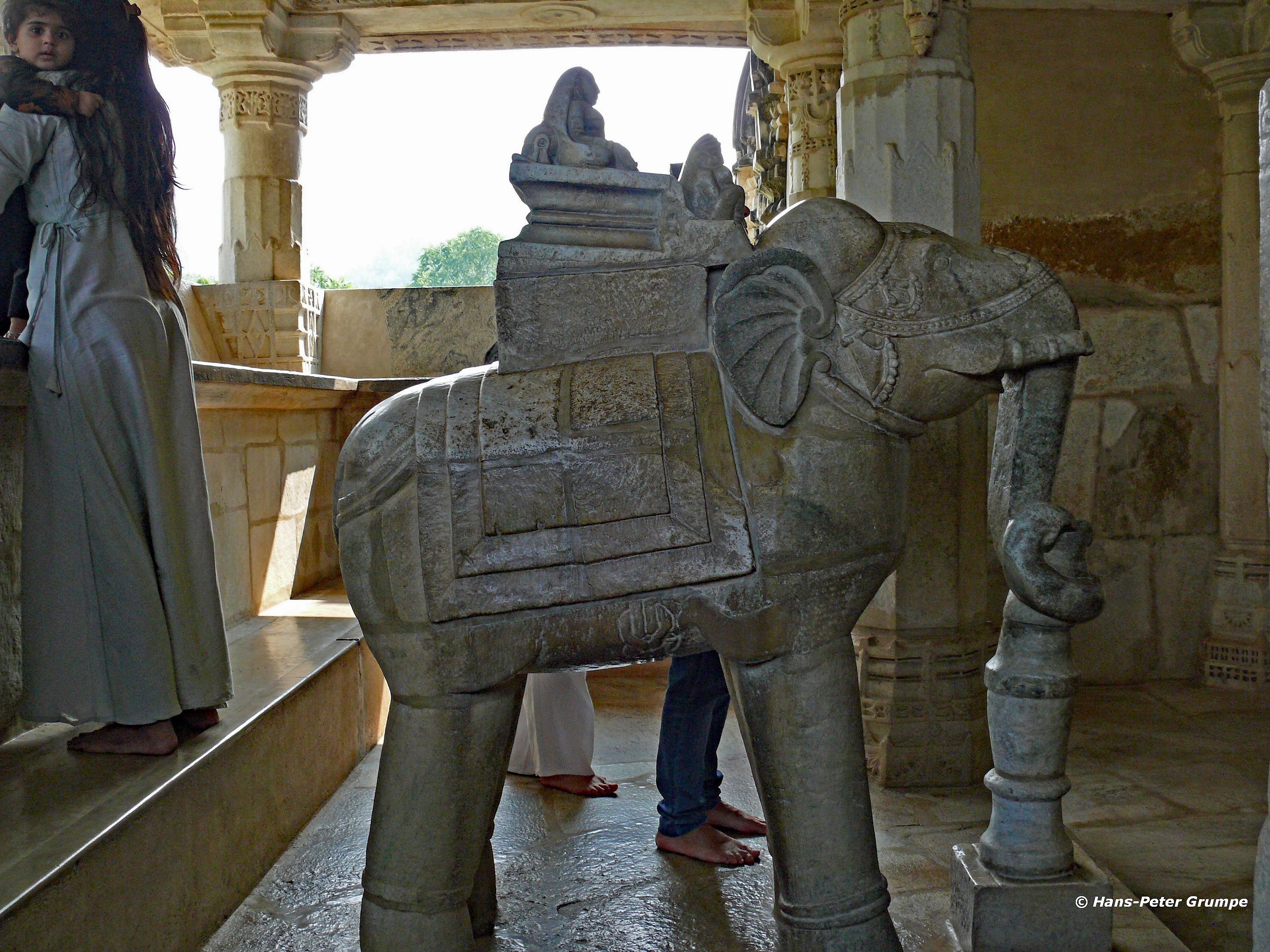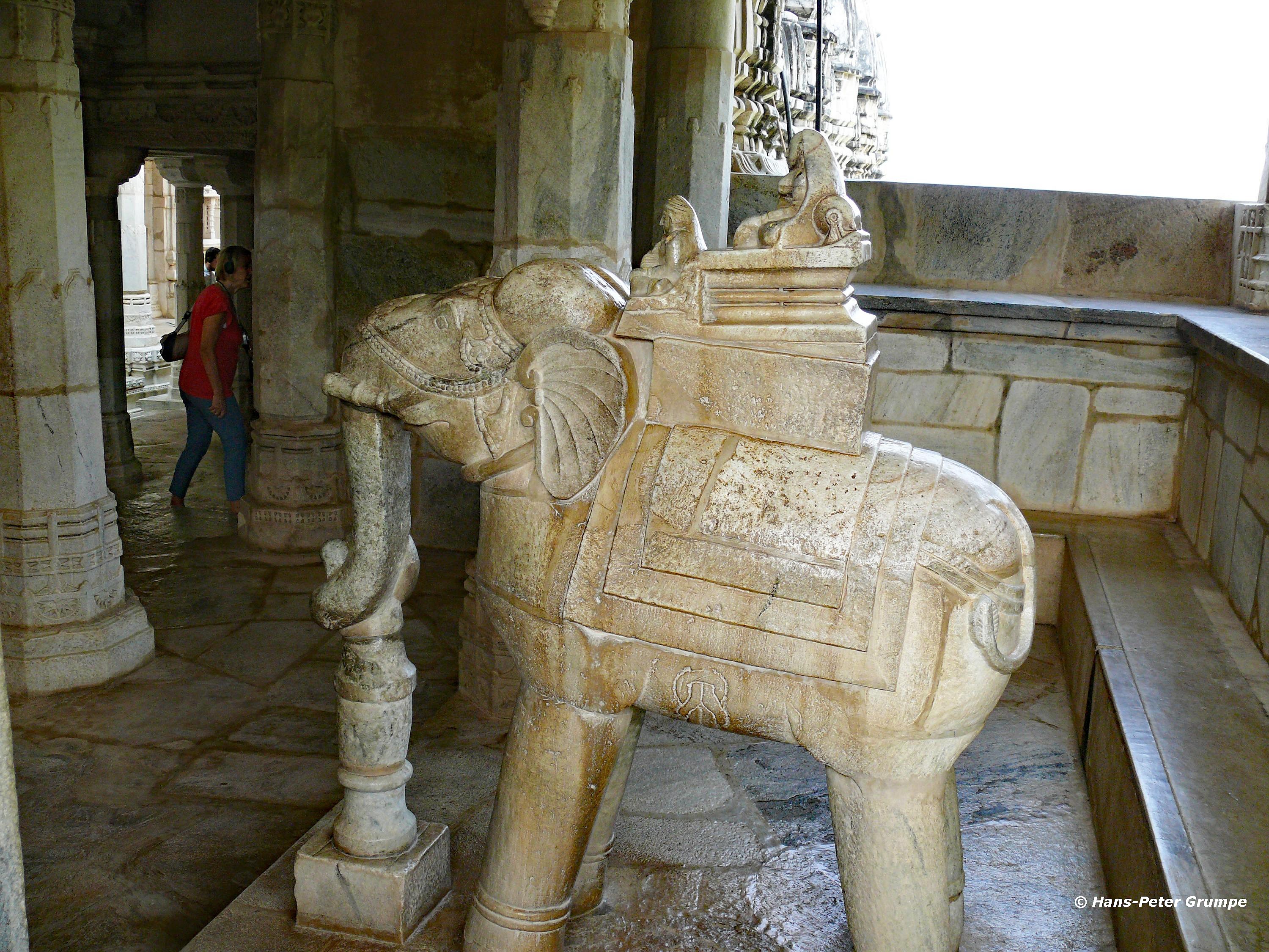 Ranakpur: Adinatha-Tempel - Elefantenskulptur, Säulen