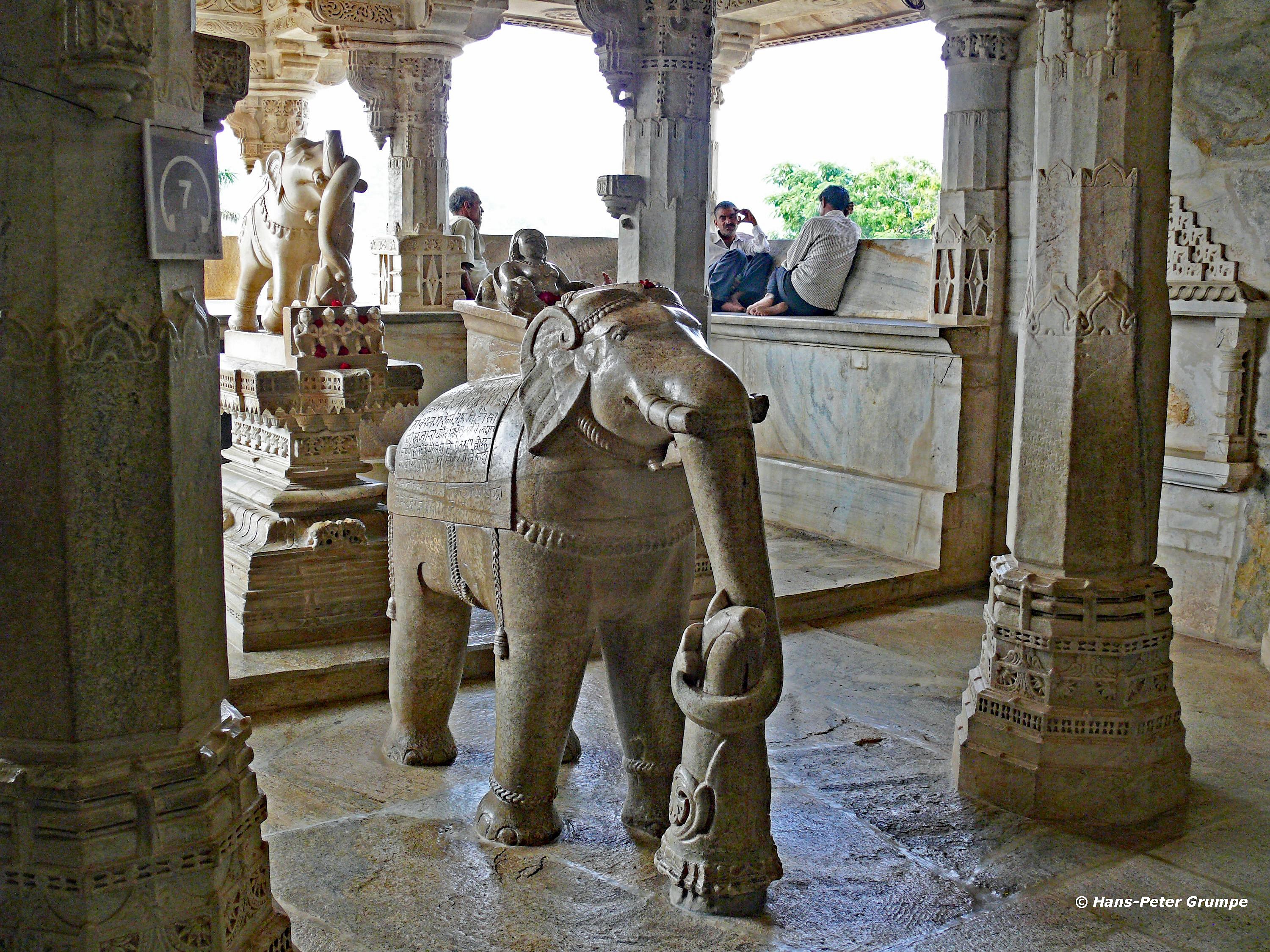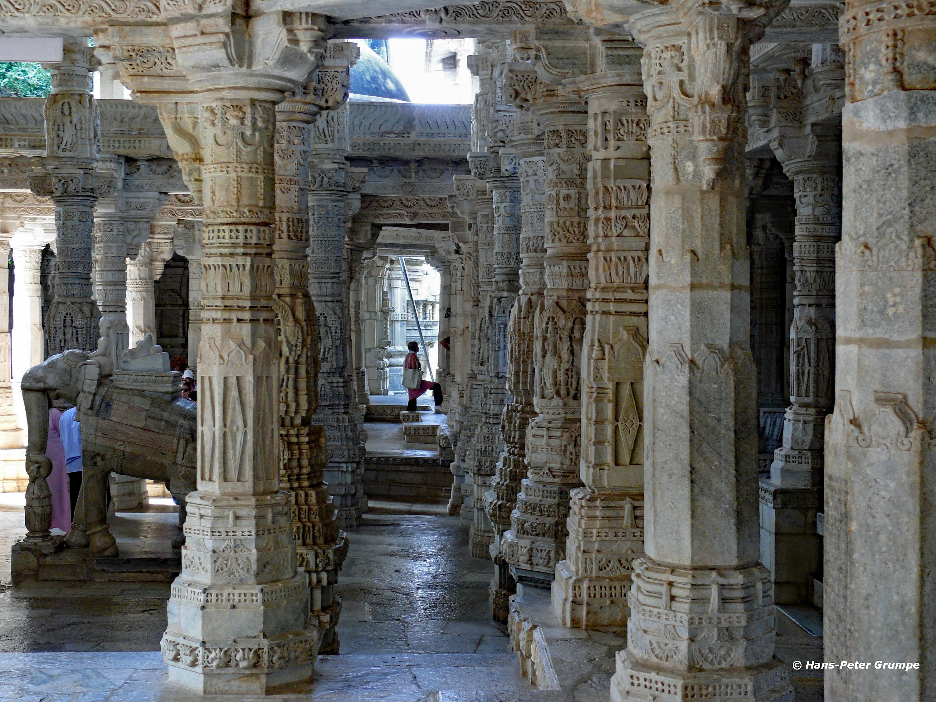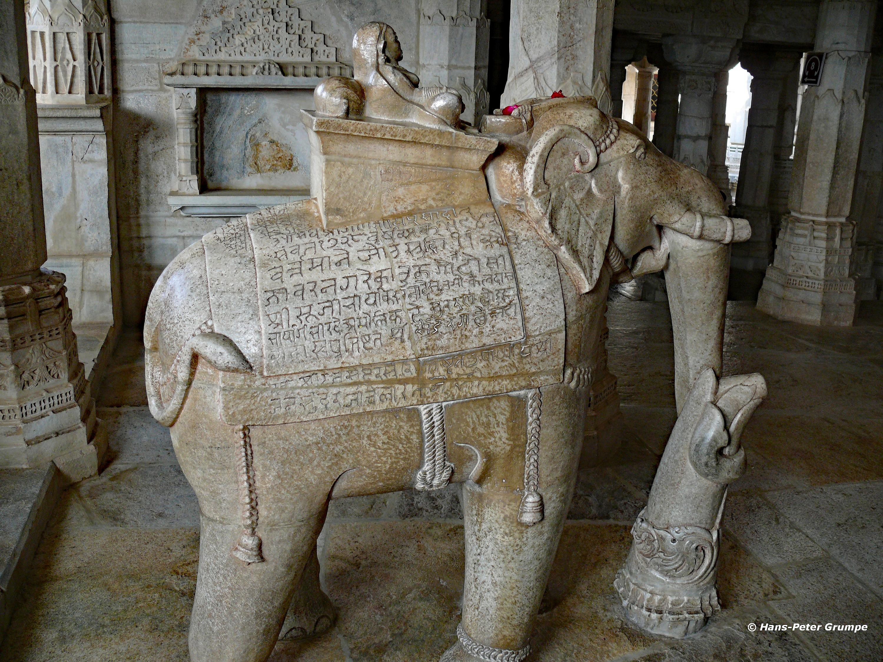 Ranakpur: Adinatha-Tempel - Elefantenskulptur, Säulen