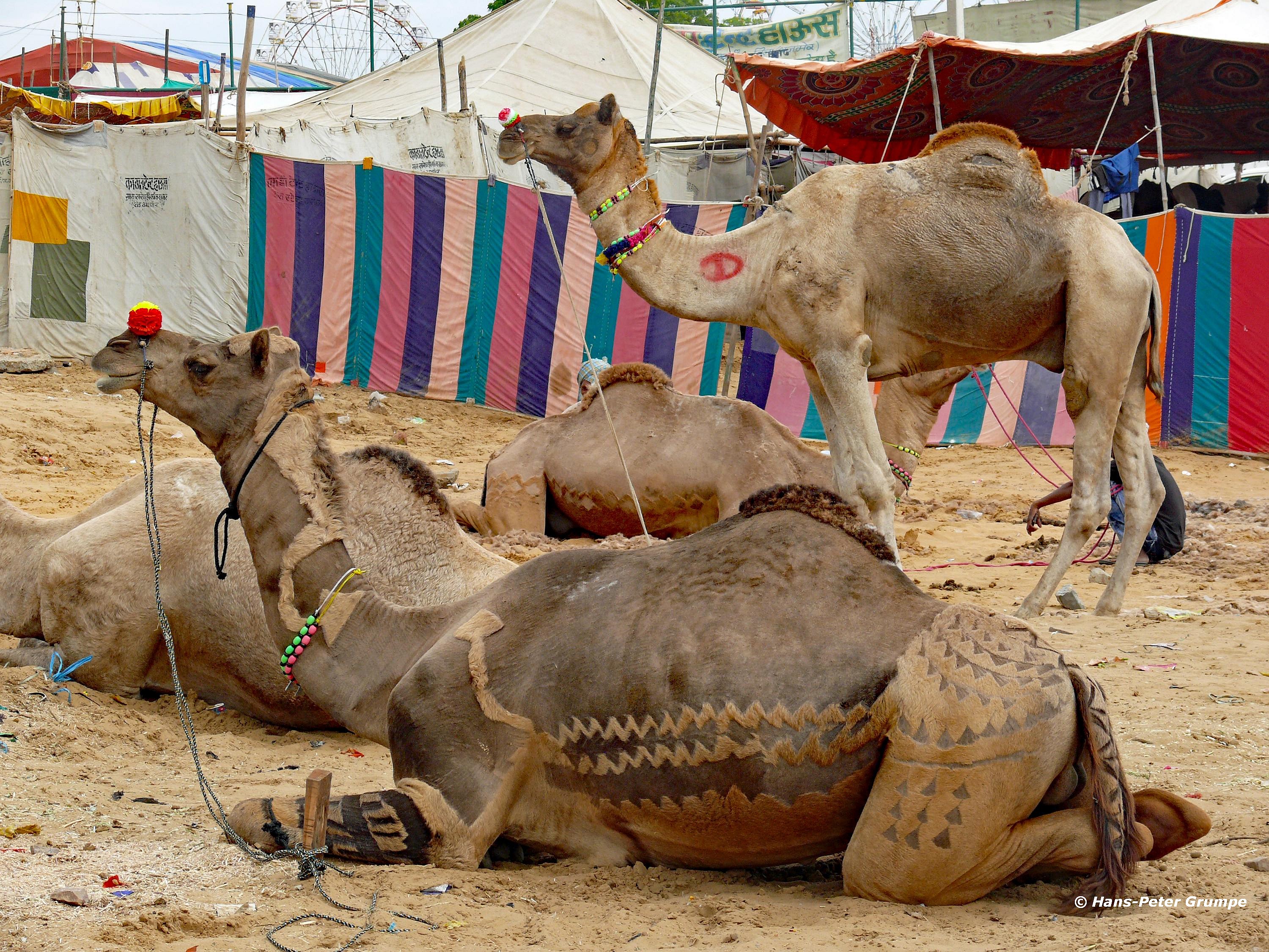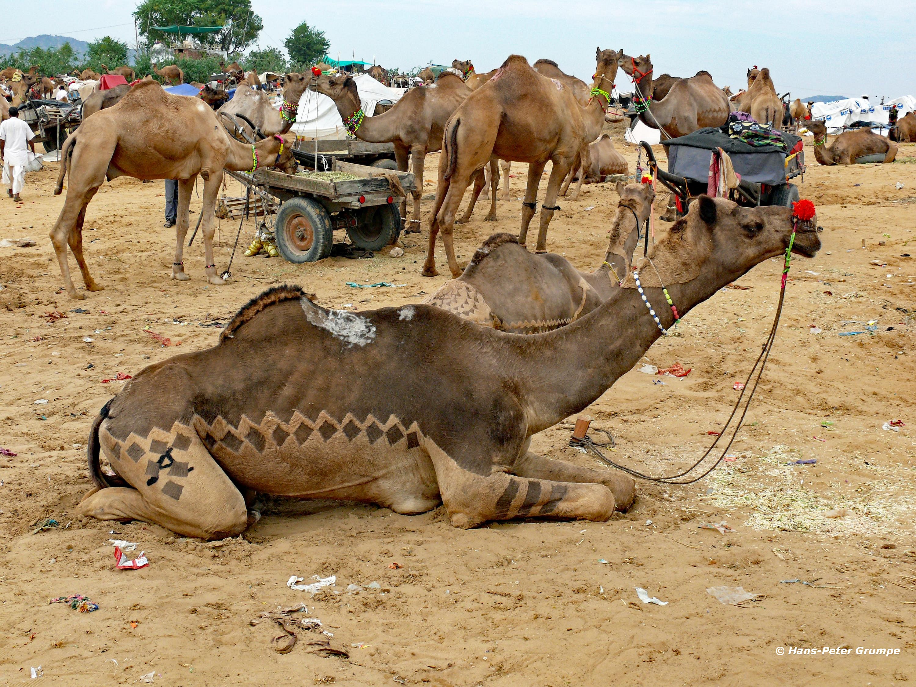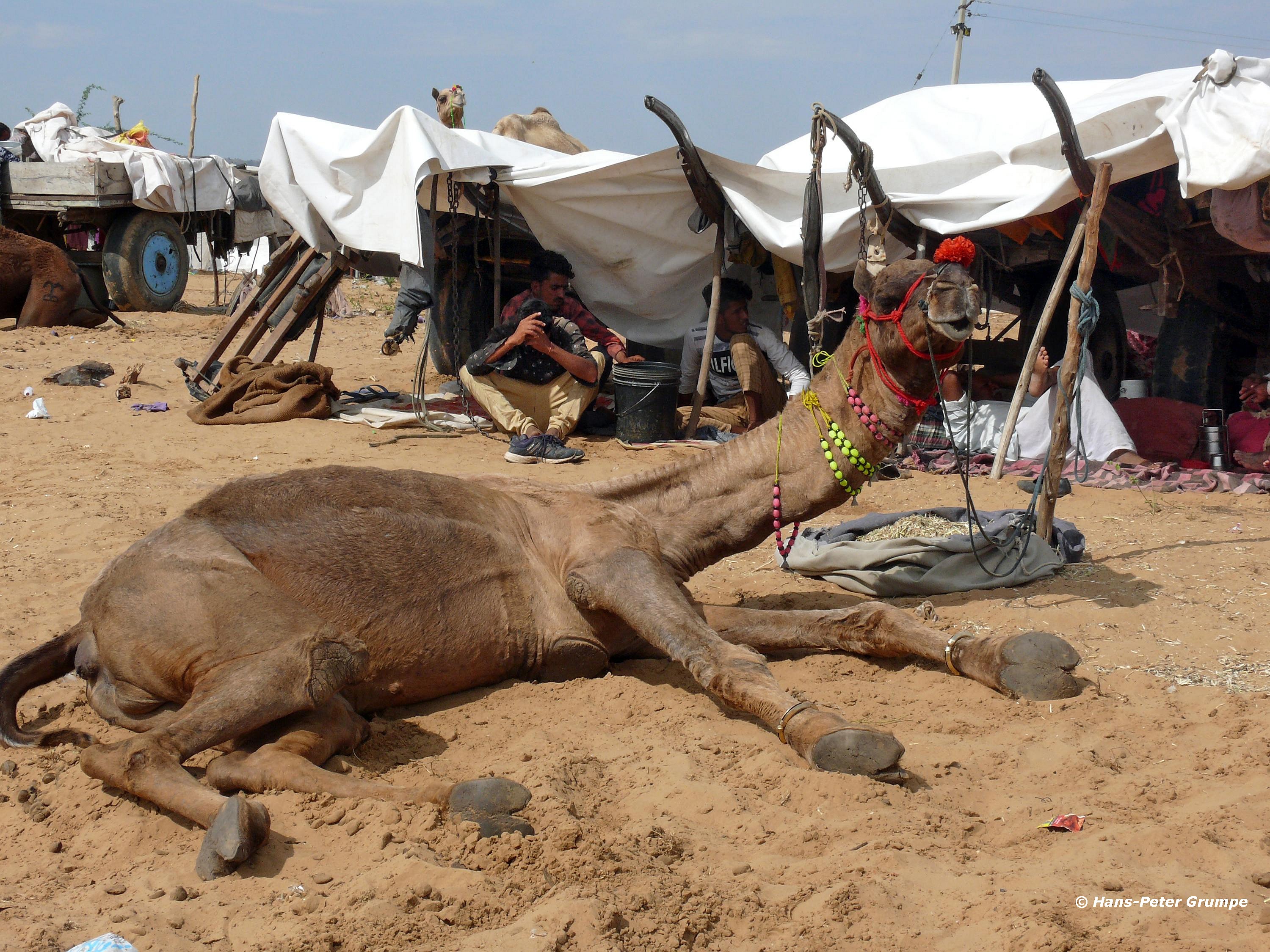 Pushkar Mela: Pferde- und Kamelmarkt - liegendes Kamel