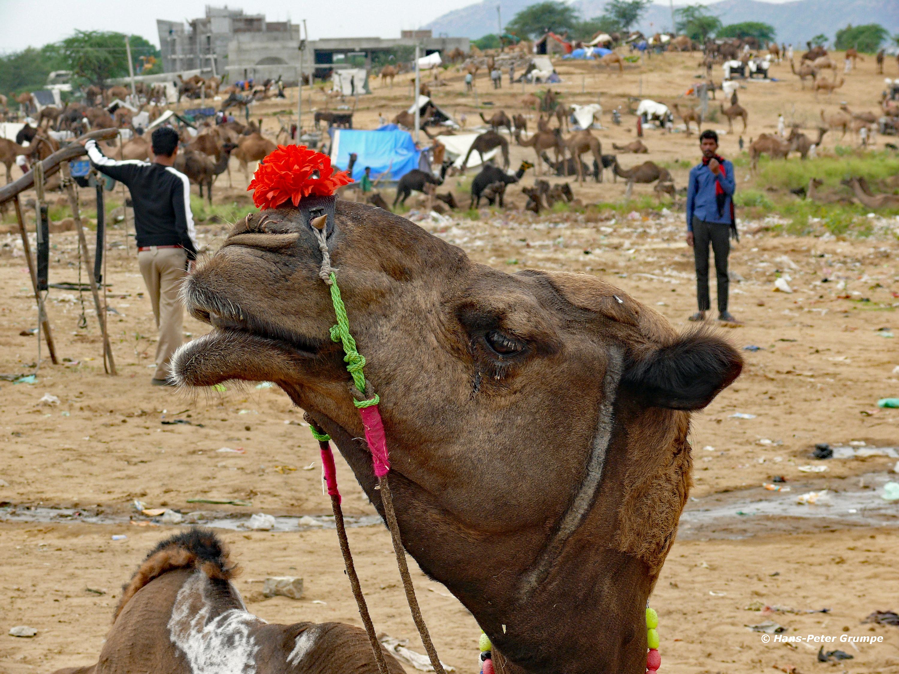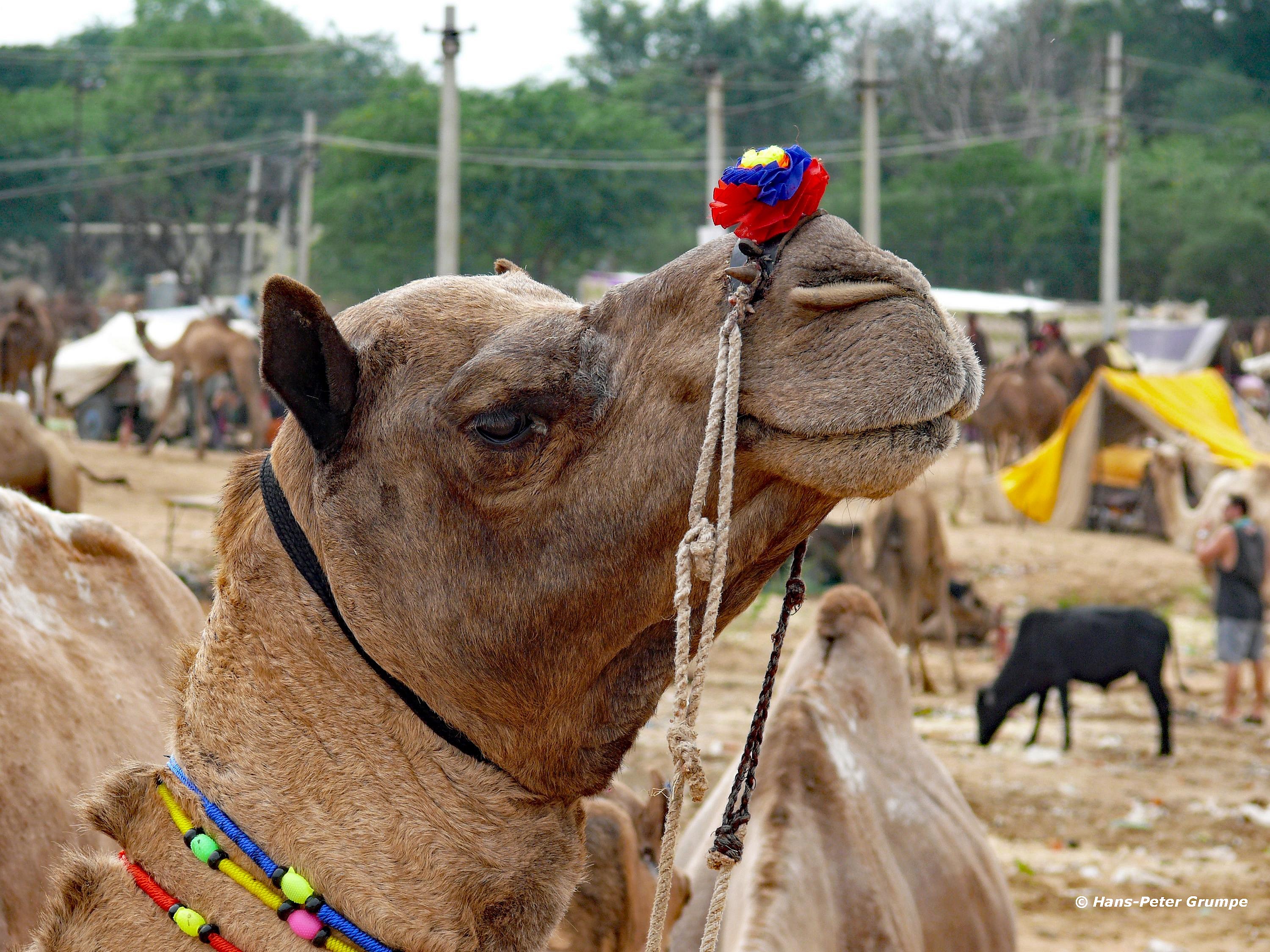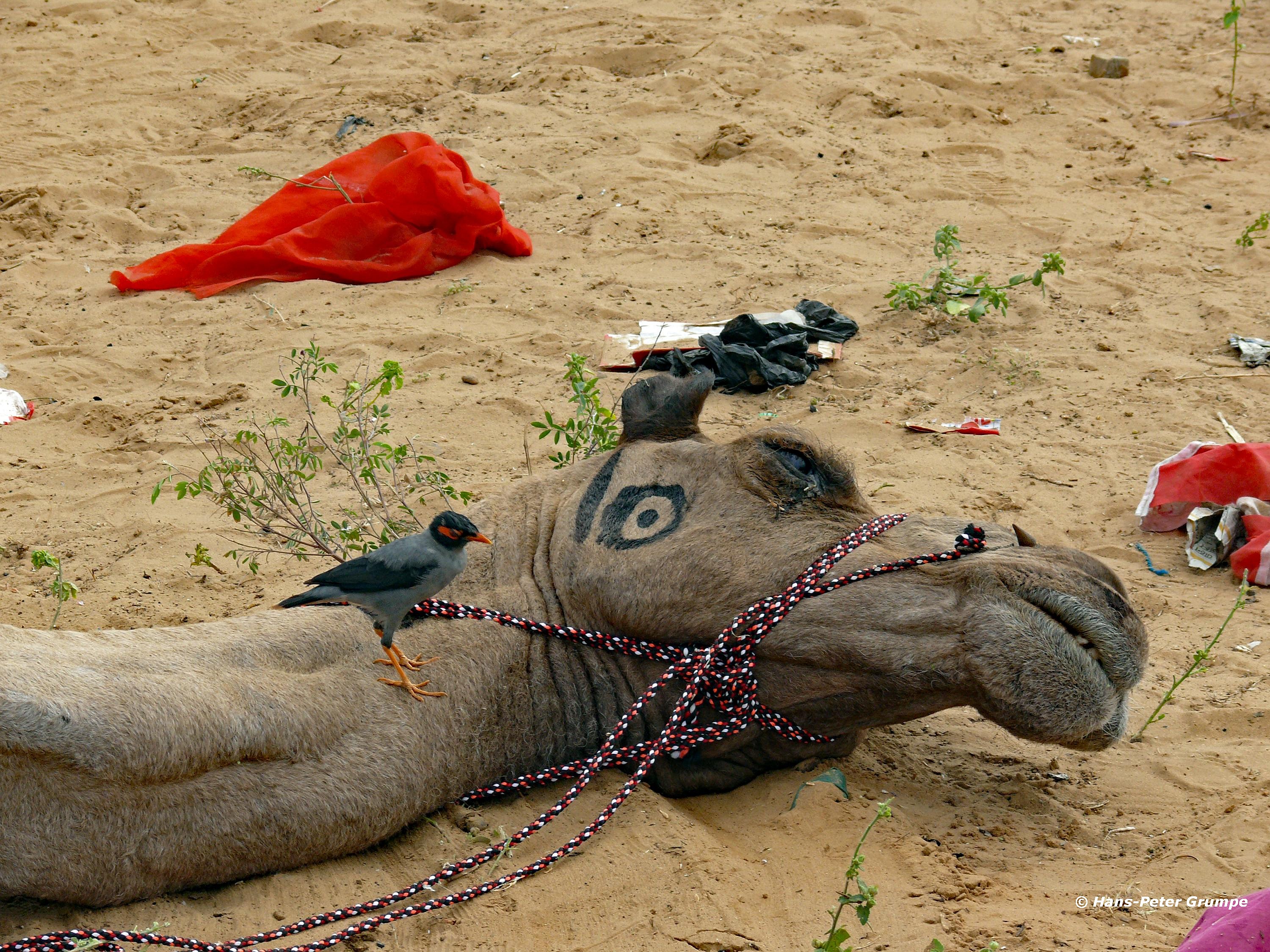 Pushkar Mela: Pferde- und Kamelmarkt - Vogel auf Kamel