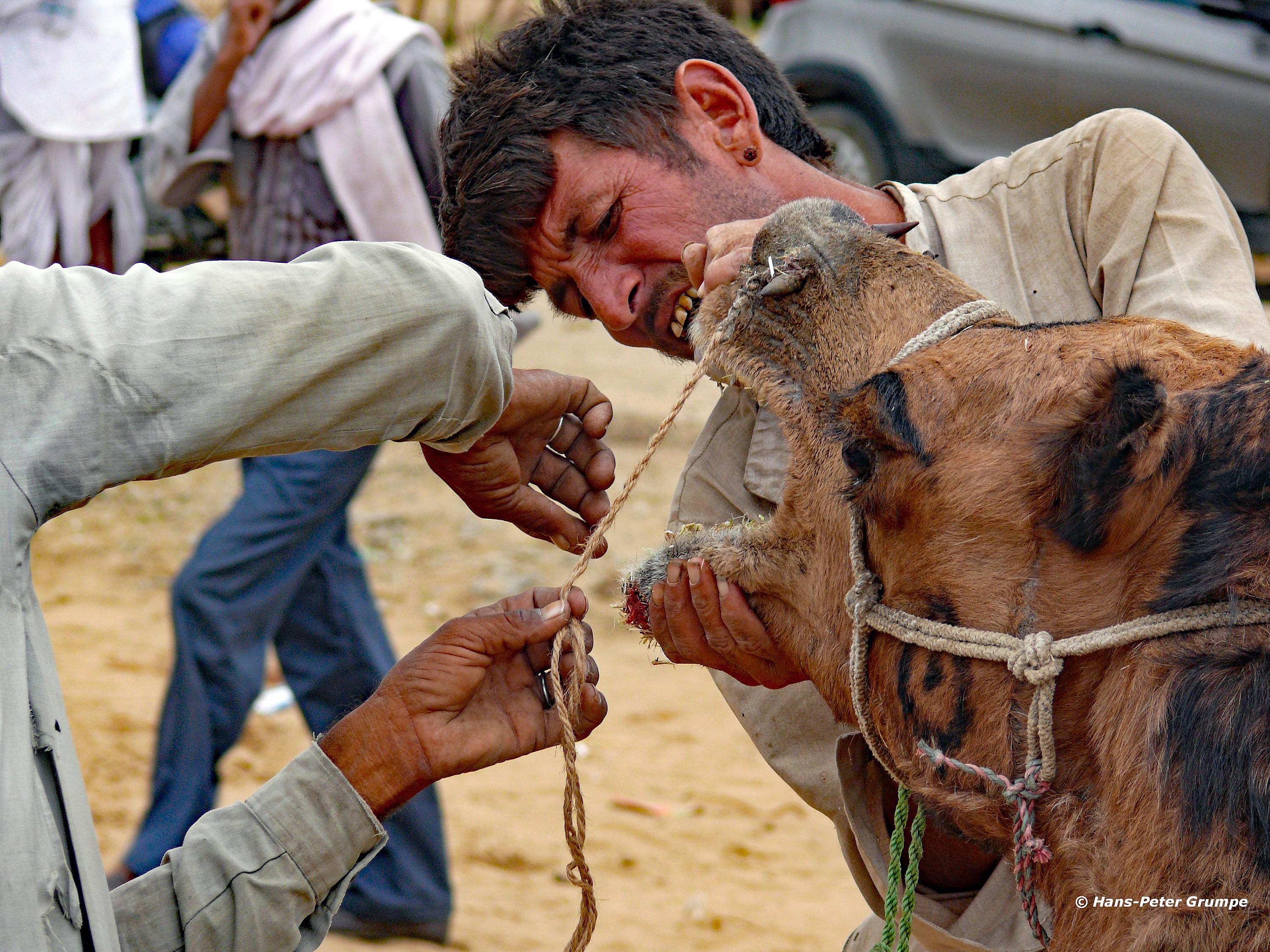 Pushkar Mela: Pferde- und Kamelmarkt - Dromedar beim Zahnarzt