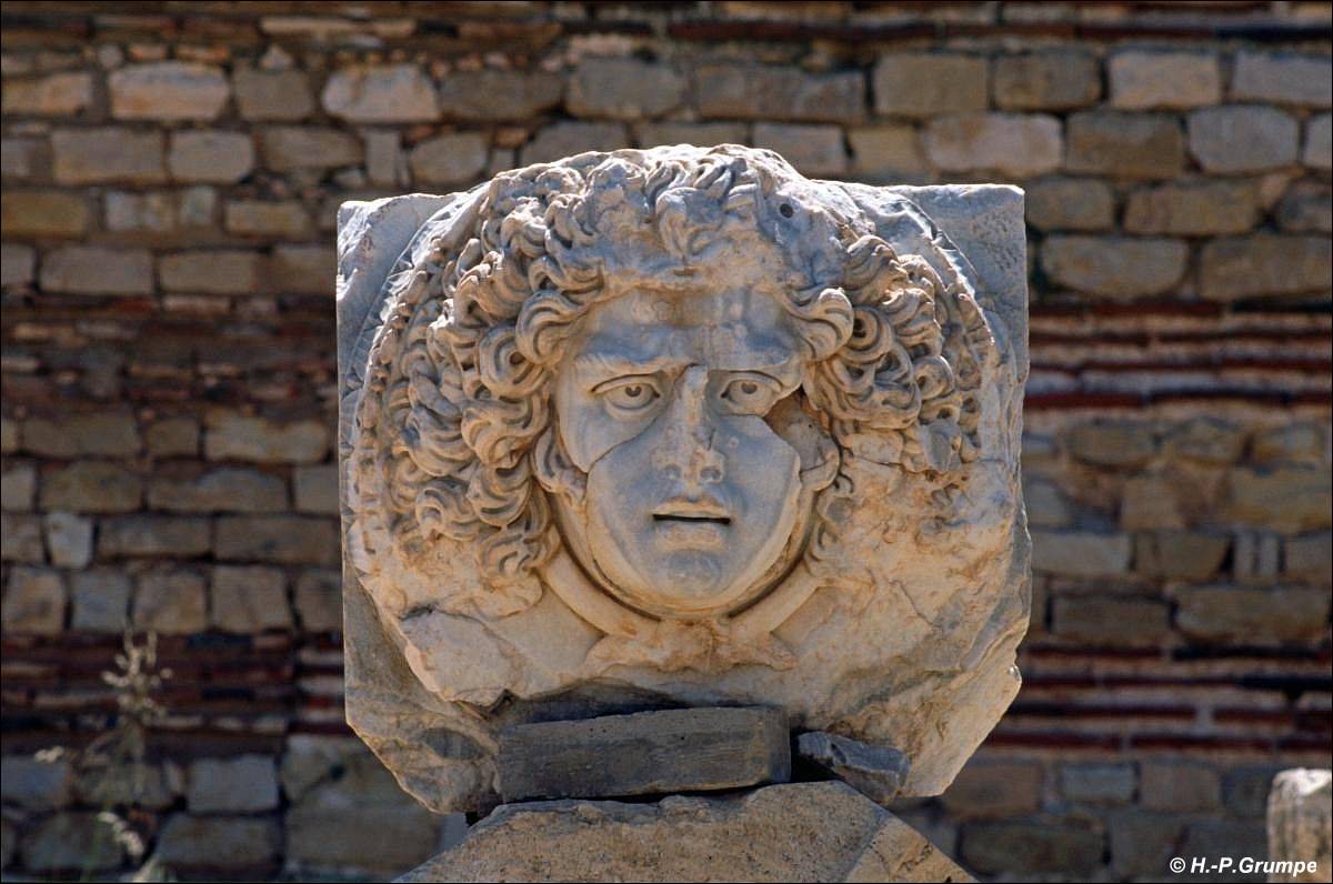 Das severische Forum war der juristische, religiöse und wirtschaftliche Mittelpunkt der Stadt. Im Hintergrund ist die Basilika zu erkennen, die u.a. als Gerichtsgebäude diente und später als Kirche genutzt wurde.