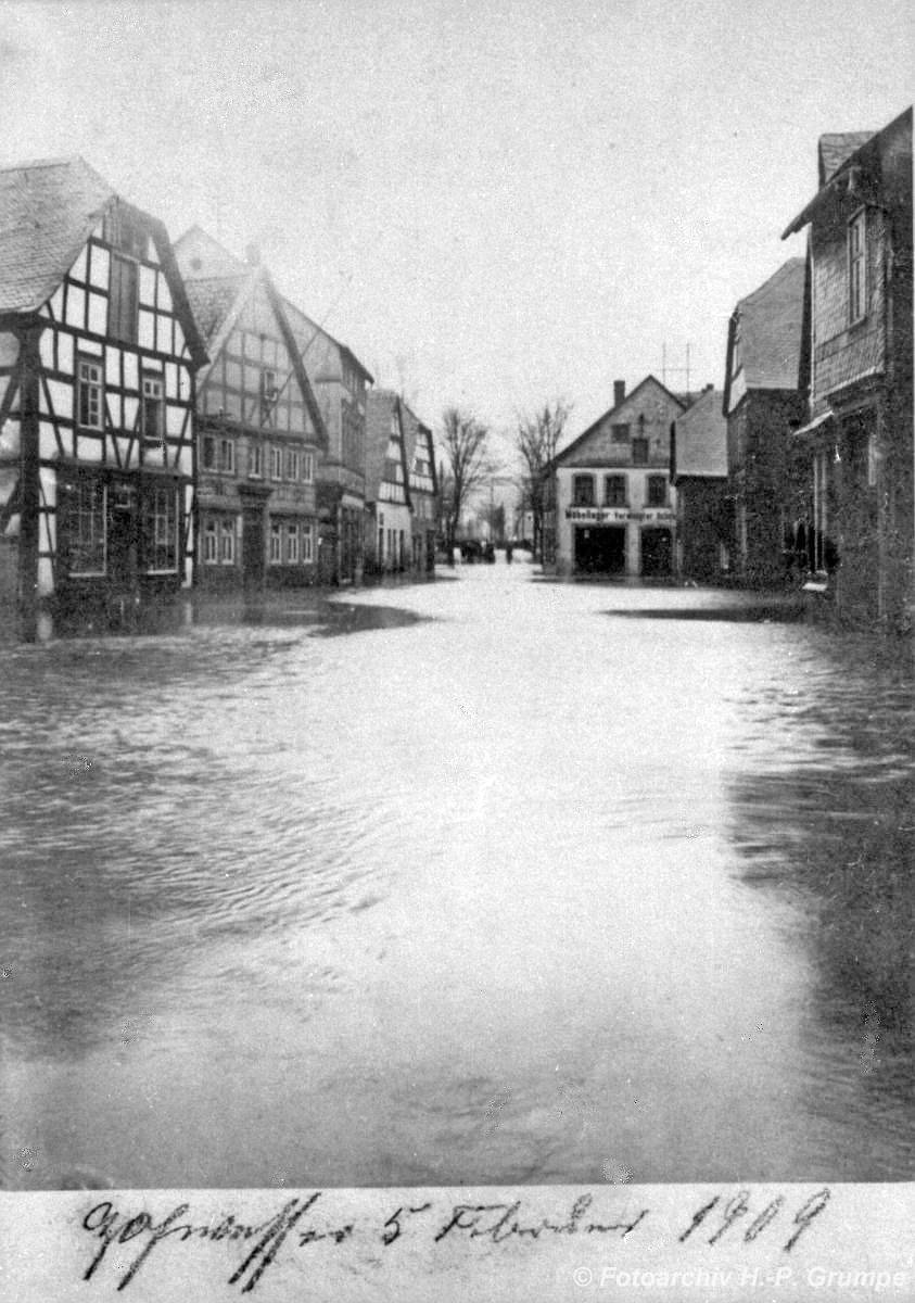 Blick in die Ruhrstraße beim Hochwasser 1909.