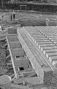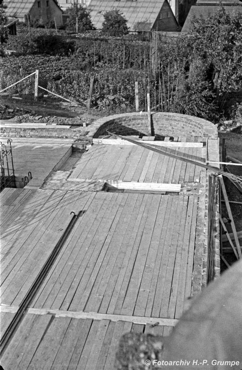 Mein Onkel, Vikar Grumpe (in der Mitte mit Schaufel), packte kräftig mit an. Der kleine Junge auf den Steinen vorne bin ich selbst mit 4 Jahren.