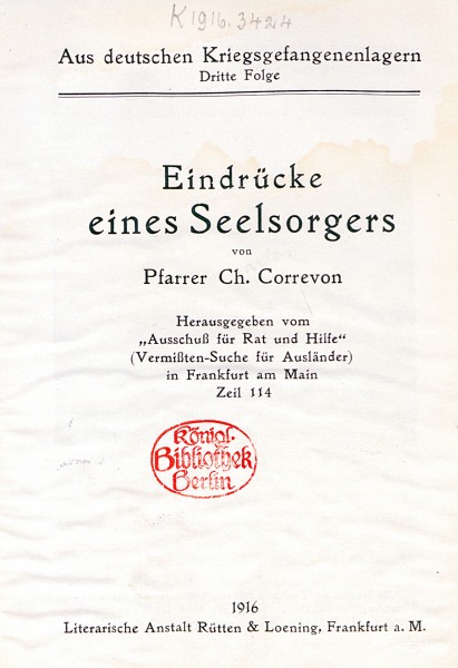 "....Wandern wir wieder nordwärts zurück, dem schönen Sauerland zu, mitten in einem poetischen Rahmen von dichten Tannenwäldern und grünen Wiesen. Es ist Sonntag Morgen. Der katholische Herr Kollege kommt gerade aus der „Kirchenbaracke" heraus. Er besitzt drinnen ein Harmonium. Ich begrüße ihn mit Handschlag und einer Gabe für seine Bedürftigen und bitte um die Erlaubnis, sein Instrument auch für unseren Gottesdienst zu benutzen. „Selbstverständlich, gerne”, antwortet der freundliche Seelsorger. Wir treten ein. Vor mir sitzen etliche zwanzig Franzosen, zehn oder fünfzehn Engländer, dann einige Deutschrussen, und vorn einige deutsche Offiziere und Wachmannschaften. „Was wollen wir singen?”, frage ich, etwas besorgt, ein gemeinsames Lied mit einer allen bekannten Melodie zu finden. Der Hauptmann, der am Harmonium sitzt, im Zivilleben evangelischer Direktor einer höheren Töchterschule, schlägt: „Ein' feste Burg“ vor. Ich verteile den Franzosen ein kleines Liederbüchlein, die Deutschrussen kennen beinahe alle Lieder auswendig, die Reichsdeutschen erst recht, die Engländer auch. Und da erschallt, gewaltig und männlich, in dieser Lagerbaracke, die wir in einen Gottestempel umgewandelt haben, das Lied, das unsere deutschen Soldaten an der Front am liebsten sangen, die „Marseillaise der evangelischen Kirche”, wie jemand das Lied, einst genannt hat. Dann kommt die Predigt, — irre ich mich nicht, über den Text: „Simon, Jonas Sohn, hast du mich lieb?” Es folgt das den meisten bekannte Lied der sinkenden Titanic: „Näher, mein Gott, zu dir". Und schließlich das Gebet. „So", sage ich, „jetzt wollen wir einmal sehen, wie weit oder wie tief unser Glaube reicht . . . Laßt uns miteinander beten, nicht als Feinde, sondern als Christenmenschen, die nur einen Gott und einen Altar haben. Und wir gedenken der Kriegsgefangenen in ihrer Einsamkeit, in ihren Nöten, in ihrer Sehnsucht nach Familie und Vaterland, in ihren Entbehrungen und Schmerzen, wir schließen die in der Nähe im Lazarett schmachtenden Kranken und Sterbenden ein, wir bitten für die Völker und ihre Regierenden, auch für die Wachmannschaften, Offiziere und Soldaten des Lagers, für „dieses Land“ und seinen Kaiser, den Nachkommen des frommen und großen Admirals Gaspard de Coligny . . .