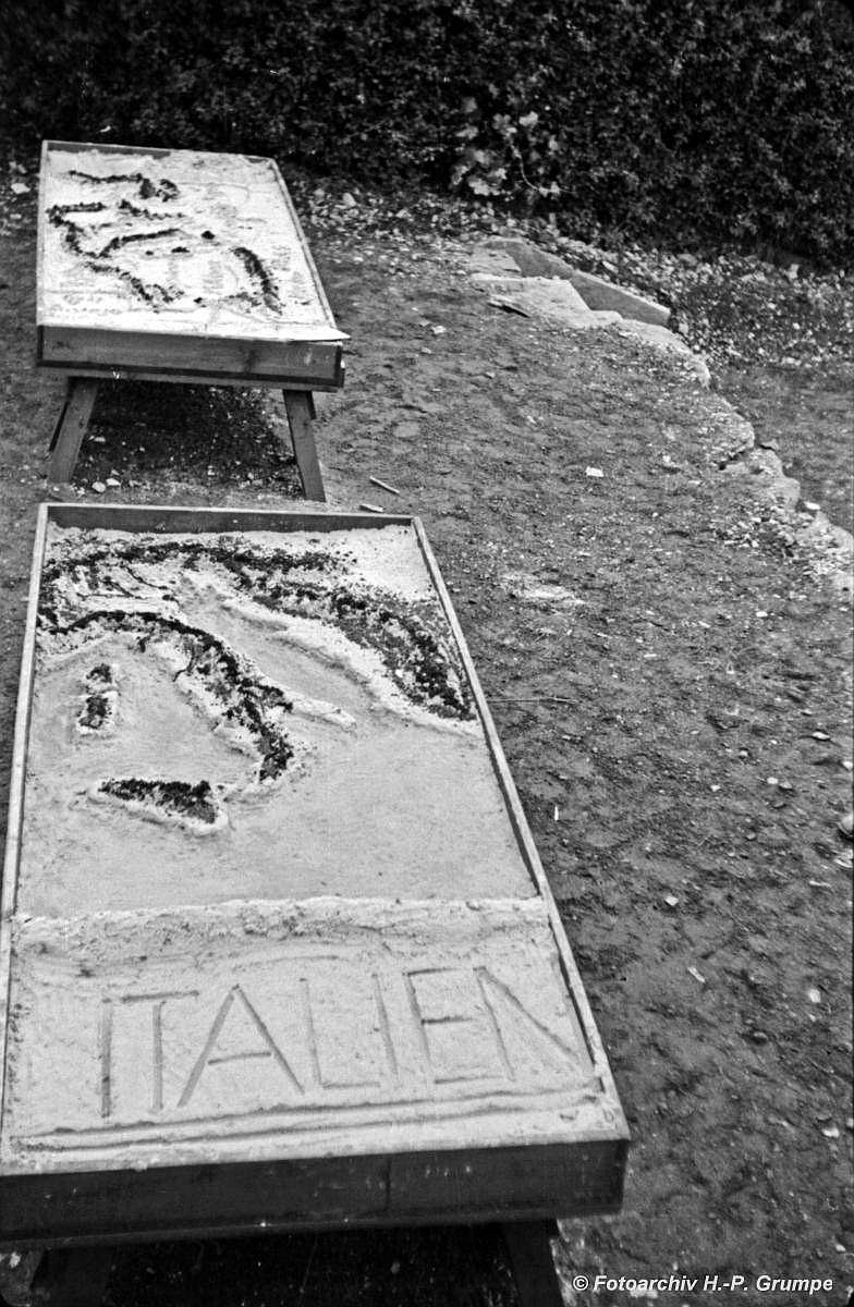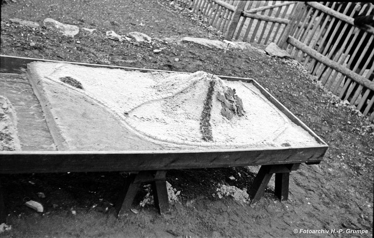 Die Sandkästen dienten zur Veranschaulichung im Geografie-Unterricht