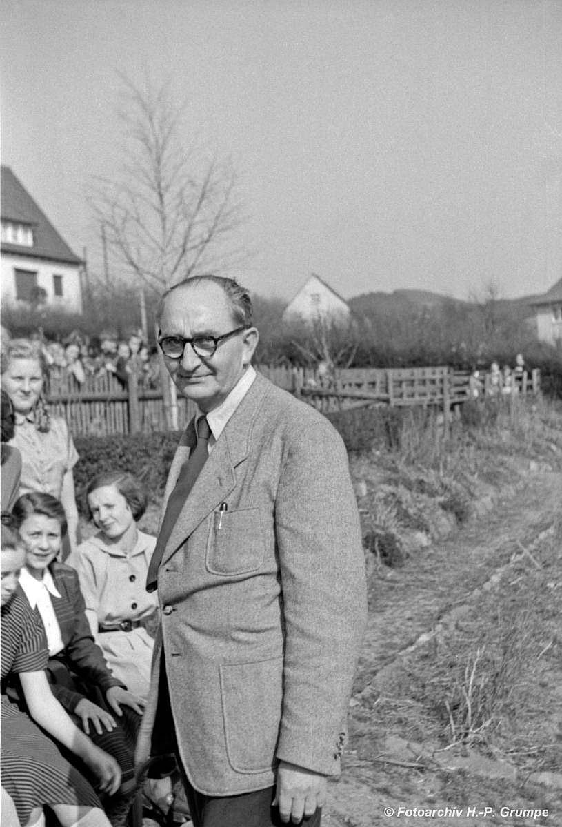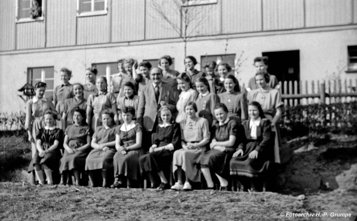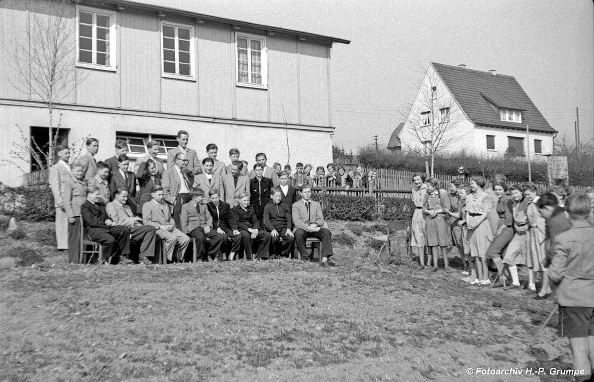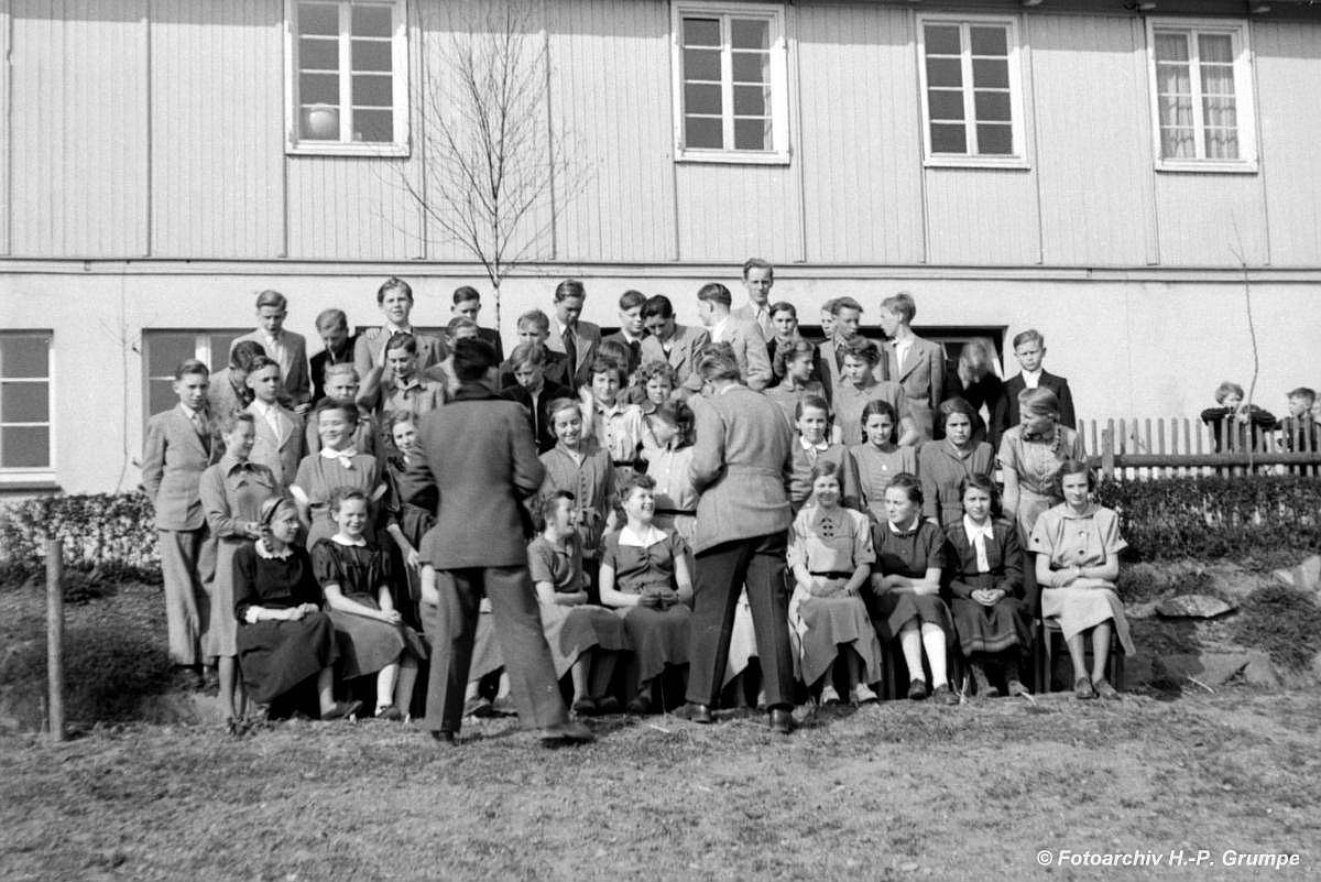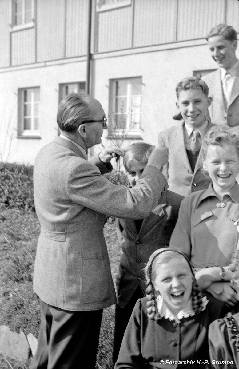 Entlassklasse 1953: Rektor Göbel korrigiert fürs Foto