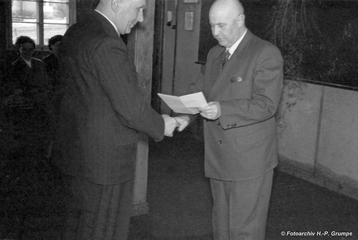 1954 Dienstjubiläum Eichner: Überreichung der Urkunde
