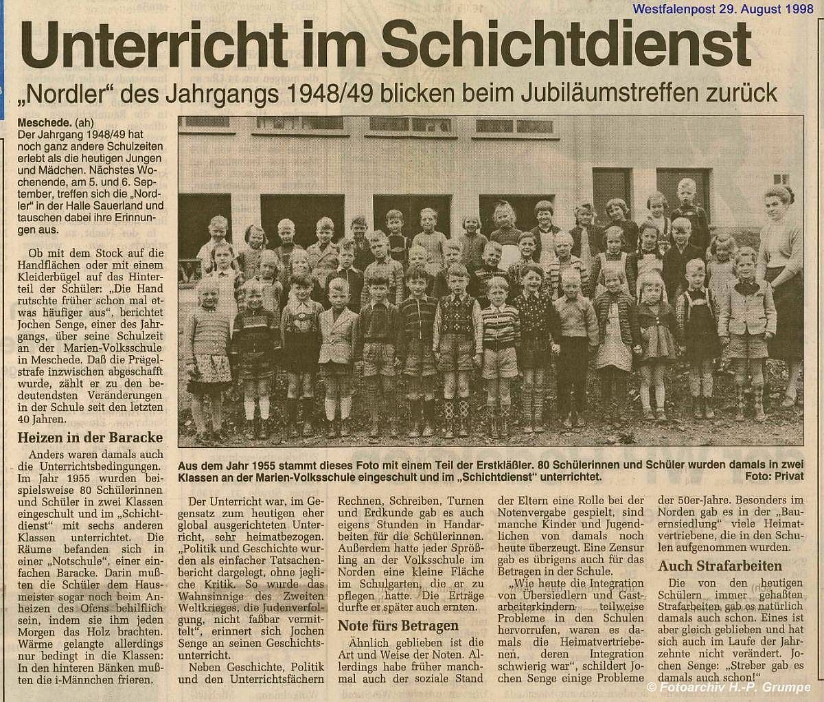 WP 29.8.1998 zum Jahrgangstreffen der 1948/49er mit Berichten über die damalige Schulsituation