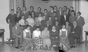 1959 Entlassjahrgang mit Lehrern (wie vorher, rechts hinter Eichner Herr Krämer, stehend)