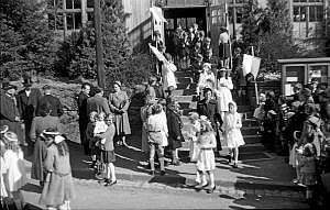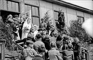 Letzte Erstkommunion in der Notkirche am 12.4.1953: Auszug aus der Kirche