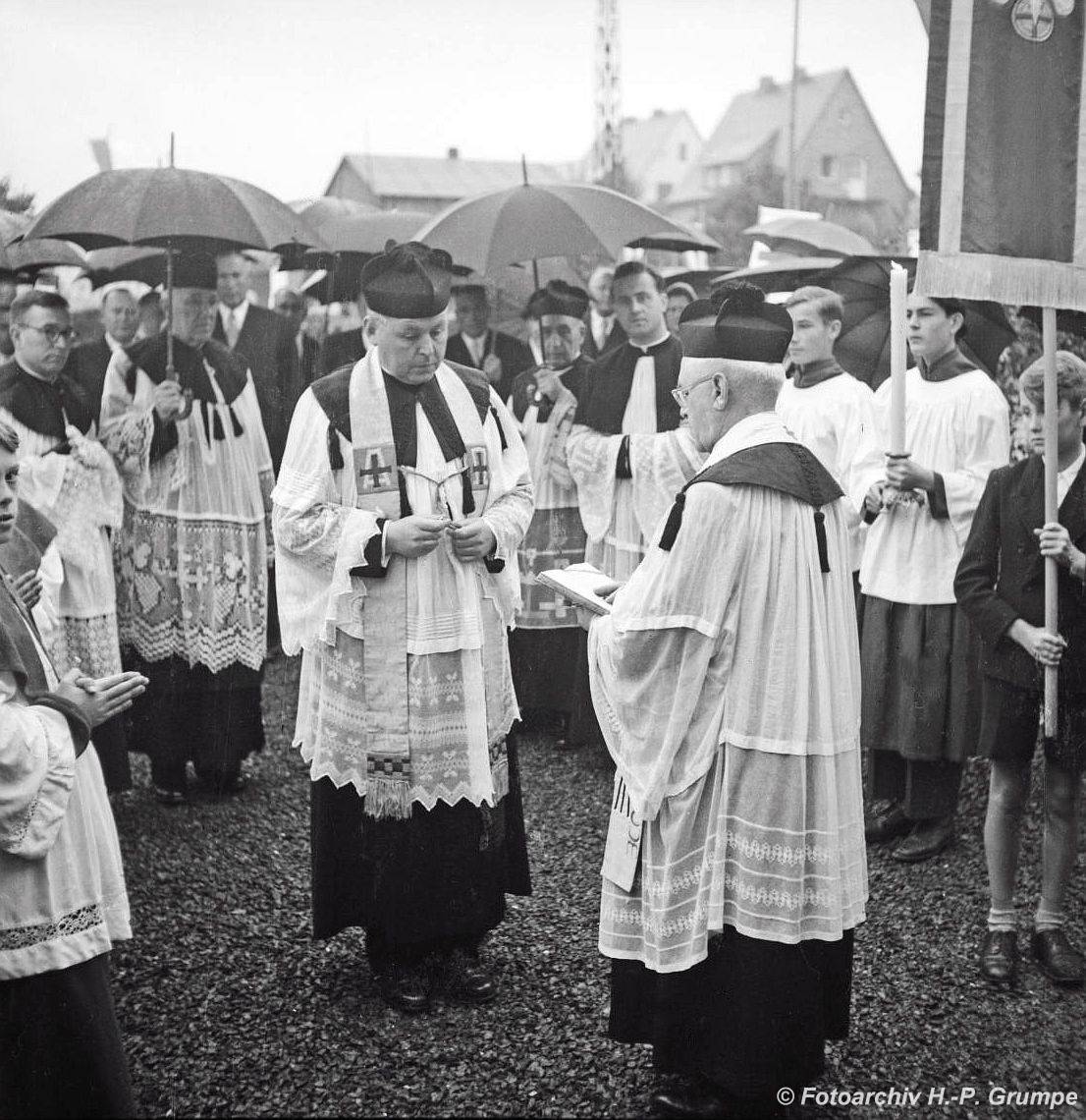 "..Die junge Pfarrgemeinde Mariä-Himmelfahrt hatte am Sonntag einen besonderen Festtag; Dechant Schmidt (Calle) führte den vom Hochwürdigsten Herrn Erzbischof zum ersten Pfarrer der Gemeinde Maria-Himmelfahrt ernannten Pfarrer Franz-Josef Grumpe in seine Gemeinde ein.