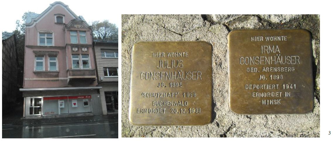 3 Stolpersteine: „HIER WOHNTE JULIUS GONSENHÄUSER,
