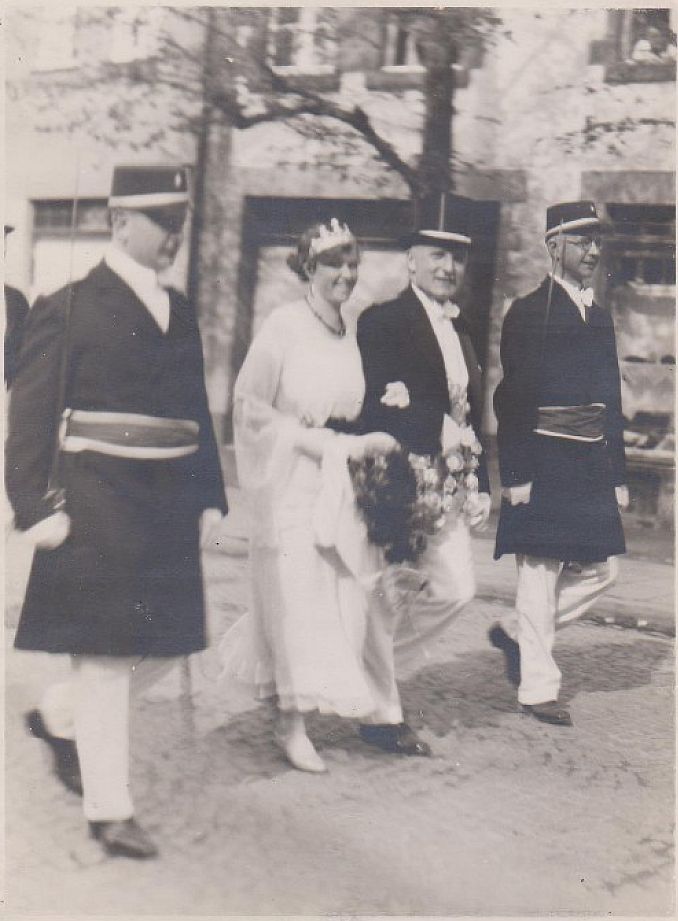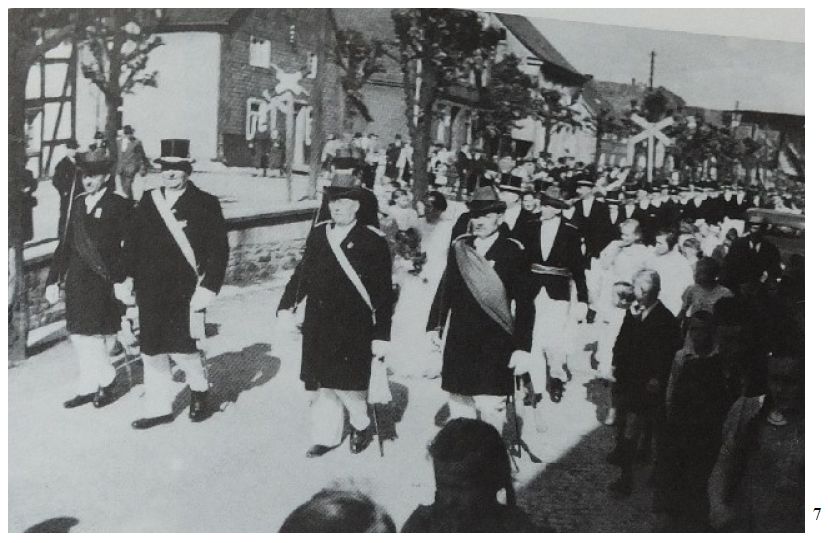 und Achselstücken angetan, an der Pfingstprozession in Warstein teilgenommen
