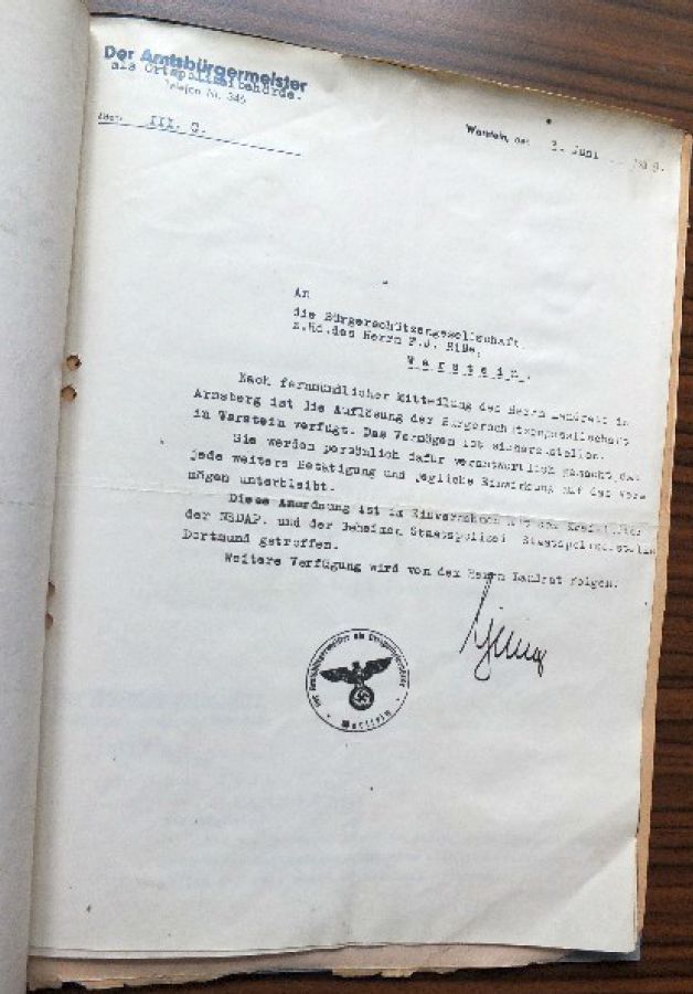„Am 11. Juli 1939 erfolgte die schriftliche Verfügung des Landrats in Arnsberg.