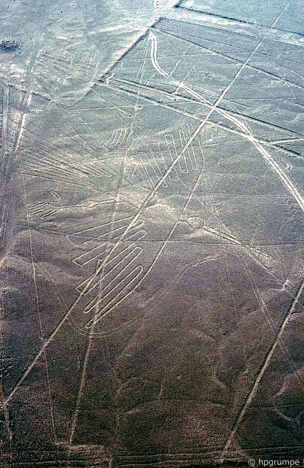 In der Oase Nazca entwickelte sich zwischen 200 v. Chr. und 600 n. Chr. eine der bedeutendsten indianischen Hochkulturen (s. dazu: http://de.wikipedia.org/wiki/Nazca-Kultur). Sie leistete Erstaunliches auf den Gebieten Keramik und Bewässerungssysteme. Besonders bekannt wurde Nazca aber durch die riesigen Scharrbilder in der Wüste, die teilweise schon zwischen 800 und 200 v. Chr. entstanden sind und erst in den 20er Jahren, als es die ersten Flüge über die Nazca-Ebene gab, entdeckt wurden. Diese Bilder - Darstellungen von Menschen, Tieren und geometrischen Formen - sind nur aus der Luft zu betrachten.