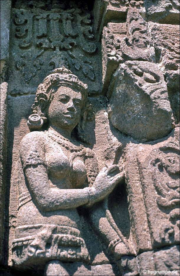 Umgebung von Yogyakarta: Candi SewuSewu ist der zweitgrößte buddhistische Tempel in Java nach Borobodur. Er liegt in unmittelbarer Nähe (2 km) des hinduistischen Prambanan-Komplexes. Er wurde im 8. Jahrhundert erbaut. Eine Inschrift aus dem Jahre 792 deutet darauf hin, dass der ursprüngliche Name dieses Tempels 'Manjus’rigrha' (Haus des Manjusri) lautete. Manjusri ist in der buddhistischen Lehre ein Boddhisatva. |