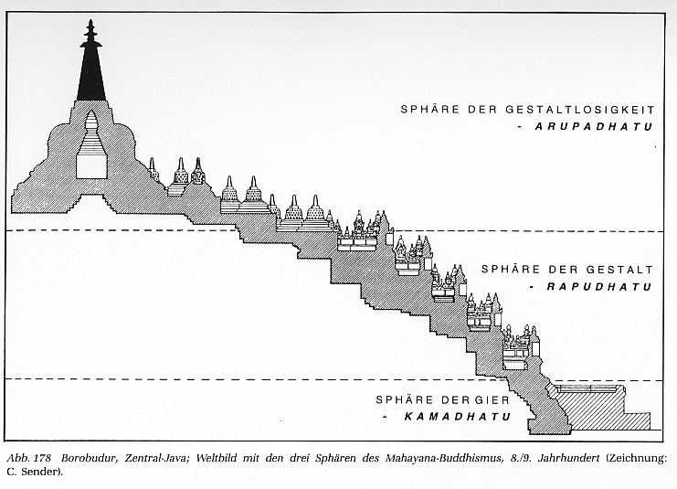 Statuen und Reliefs dekoriert sind. Darüber erhebt sich das Arupadhatu,